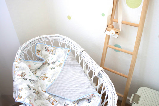Babydecke "Babywaldtiere +Waffelpique hellgrau" (einen Namen sticken ist gratis!)