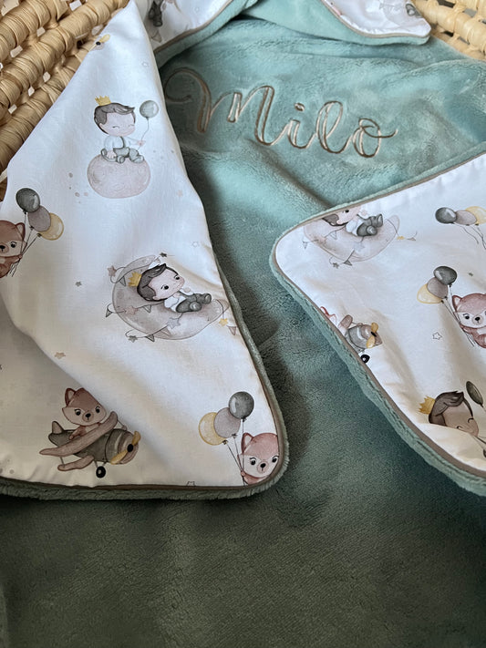 Kuscheldecke altgrün „Kleiner Prinz“ (einen Namen sticken ist gratis!)