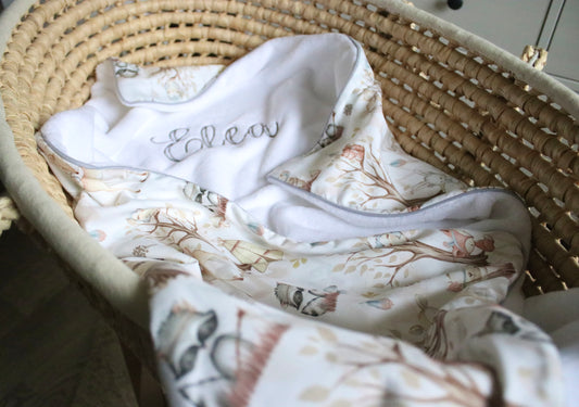 Kuscheldecke weiß „Waldtiere“ (einen Namen sticken ist gratis!)