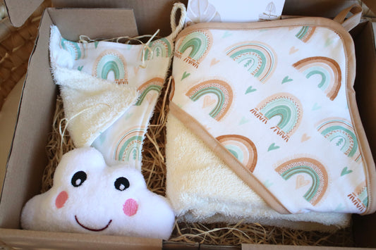 Geschenk Box "Kapuzenhandtuch Regenbogen“
