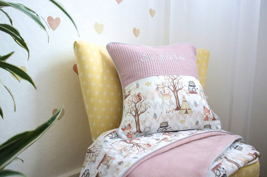 Kissen mit Name "Waldtiere +Waffelpique altrosa" (einen Namen sticken ist gratis!)