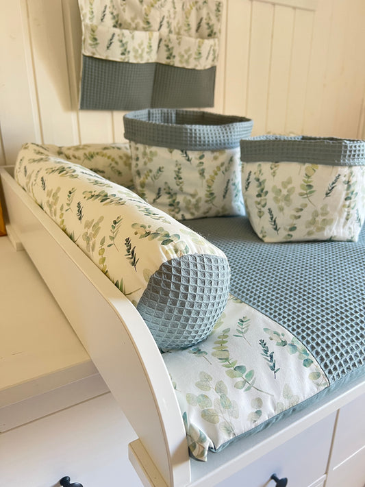 Wickelauflage Set "Eukalyptus+Waffelpique altgrün“