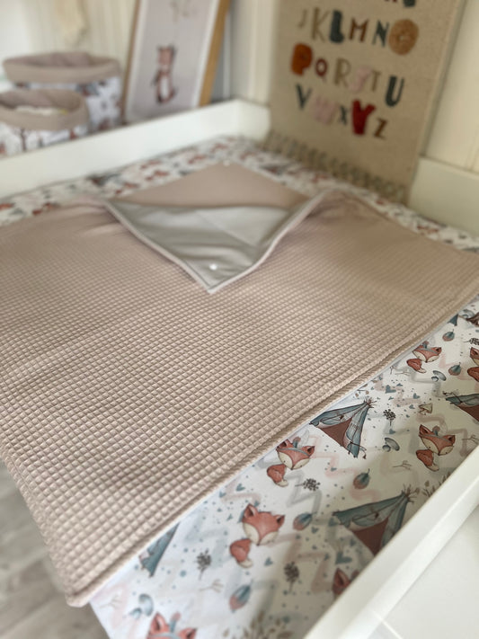 Wickelauflage Set „Füchse+Waffelpique hellbeige“