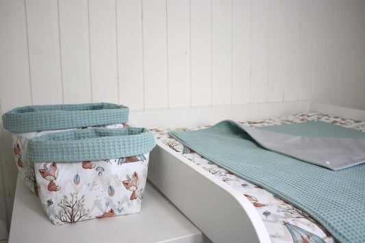 Wickelauflage Set „Füchse+Waffelpique hellgrün/mint“