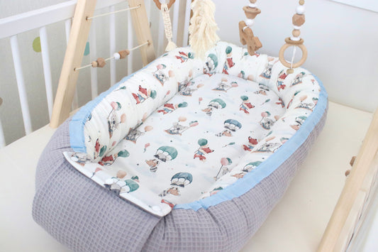 Wickelauflage Set „Tiere mit Luftballons+Waffelpique rosa/nude“
