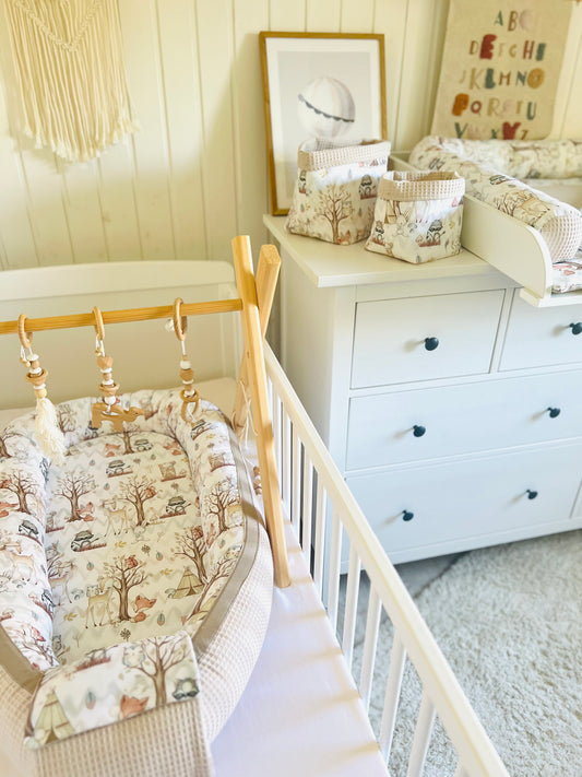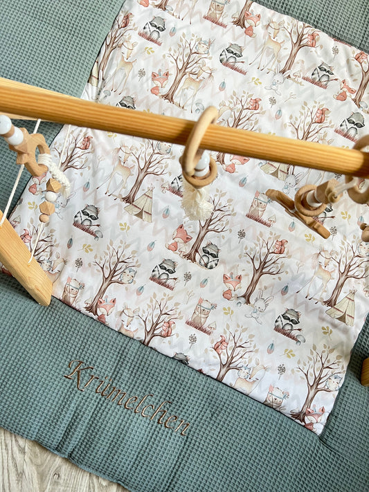 Wickelauflage Set "Waldtiere+Waffelpique hellbeige“