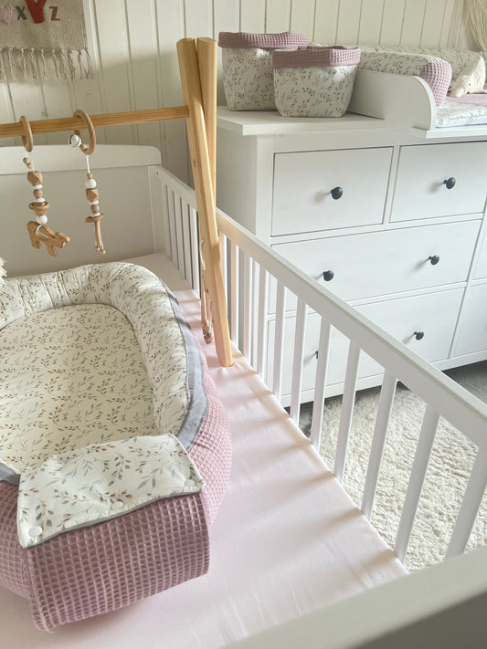 Wickelauflage Set „Pflanzen, weidenkätzchen+Waffelpique rosa/nude“