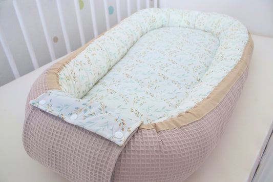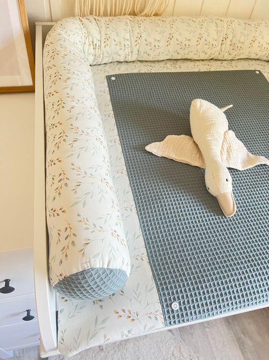 Wickelauflage Set "Pflanzen, Weidenkätzchen+Waffelpique altgrün“