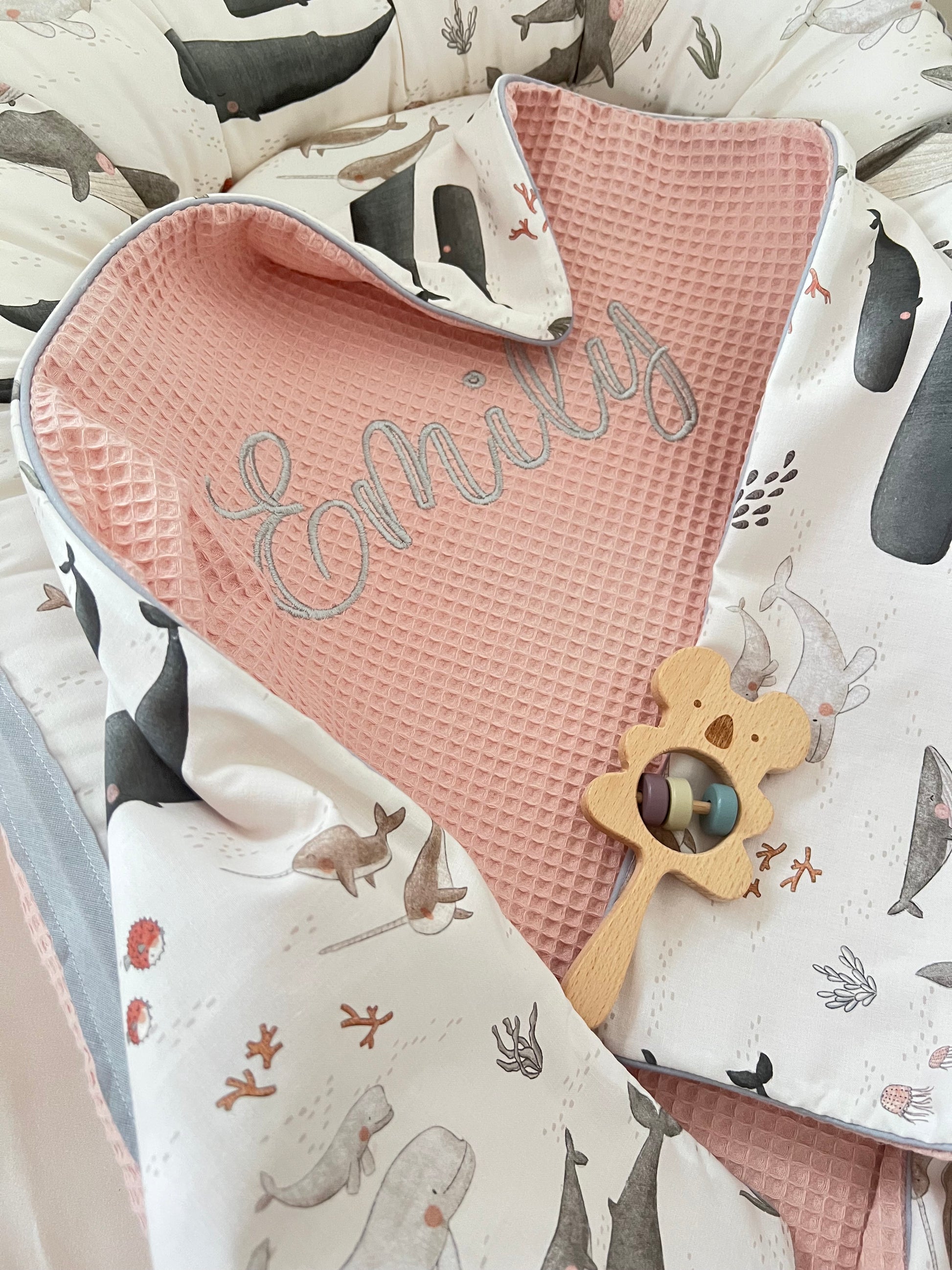 Babydecke "Wal+Waffelpique rosa/nude" (einen Namen sticken ist gratis!)
