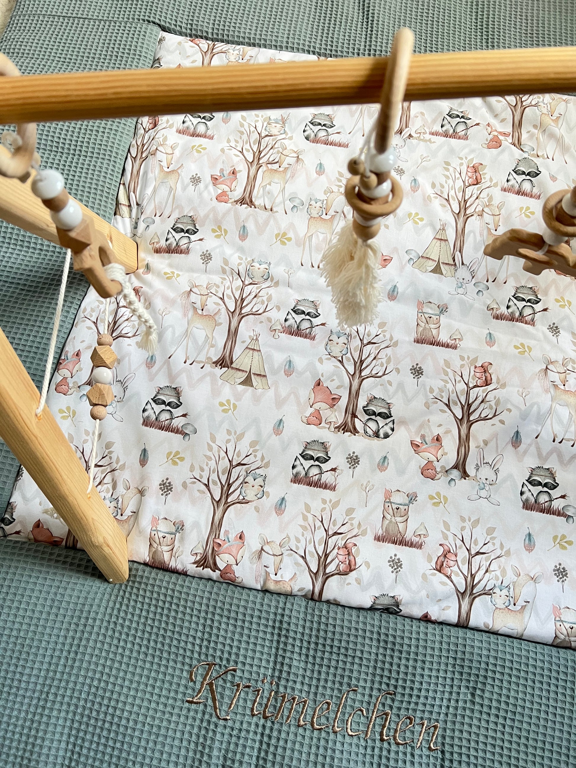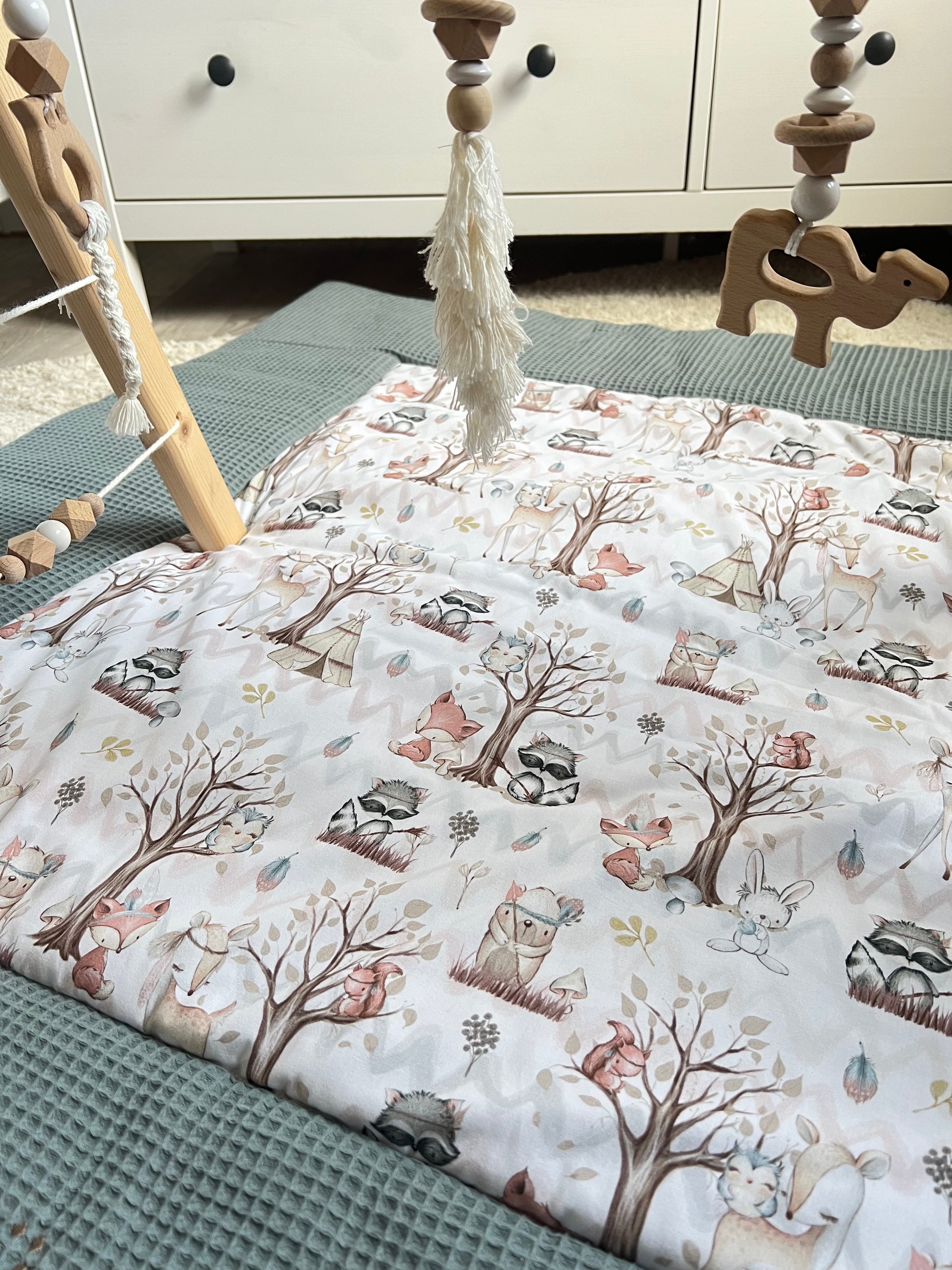 Krabbeldecke „Waldtiere+Waffelpique altgrün"
