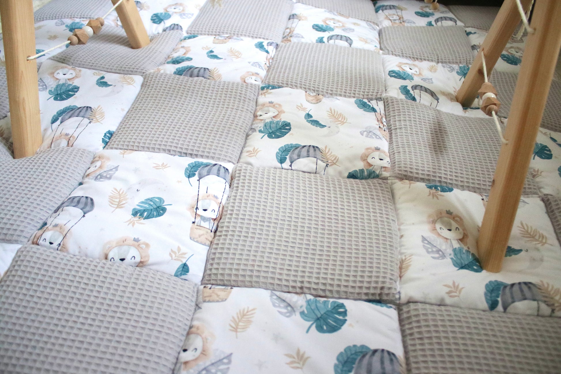Krabbeldecke Patchwork „Löwe+Waffelpique hellgrau“