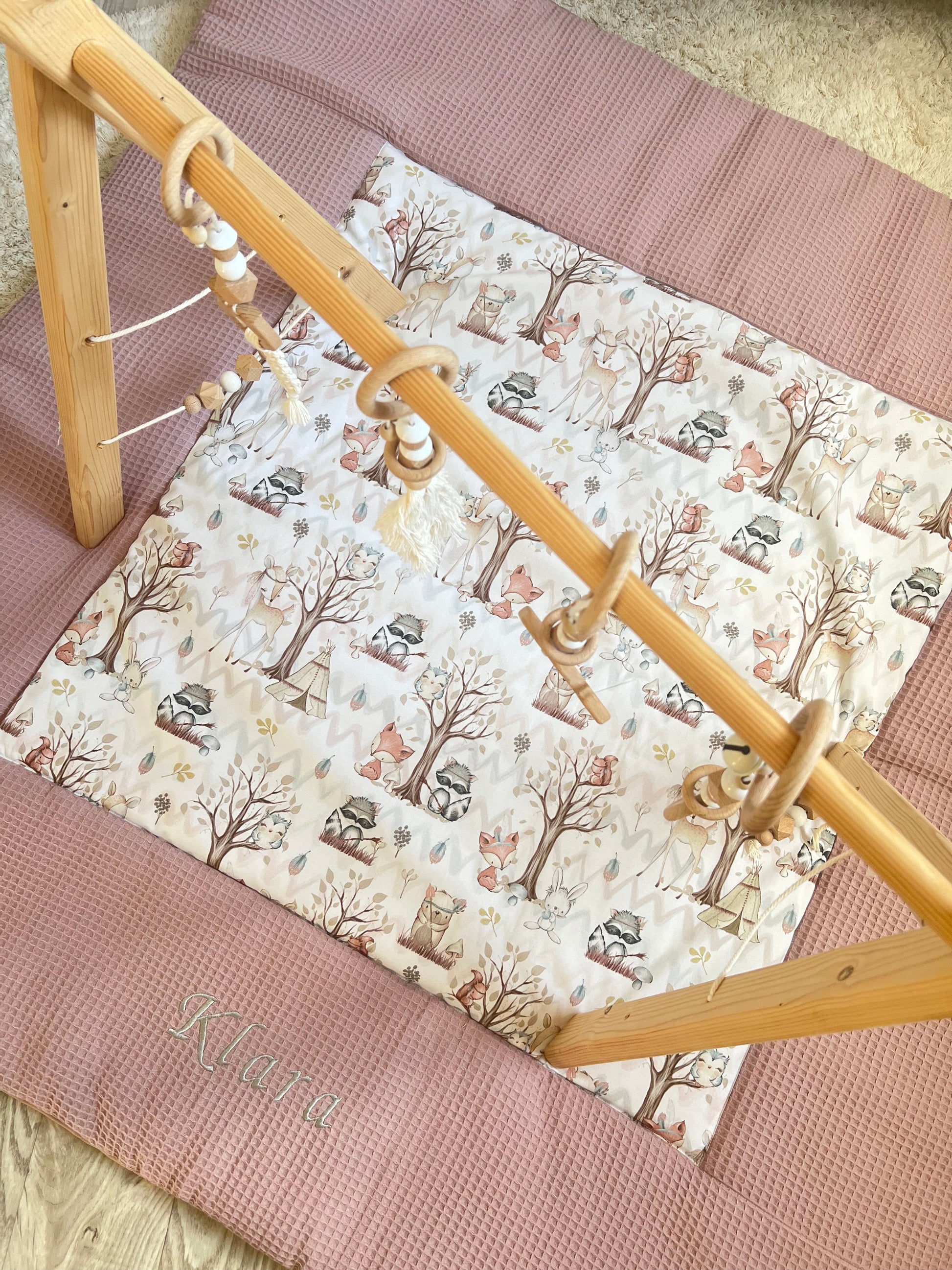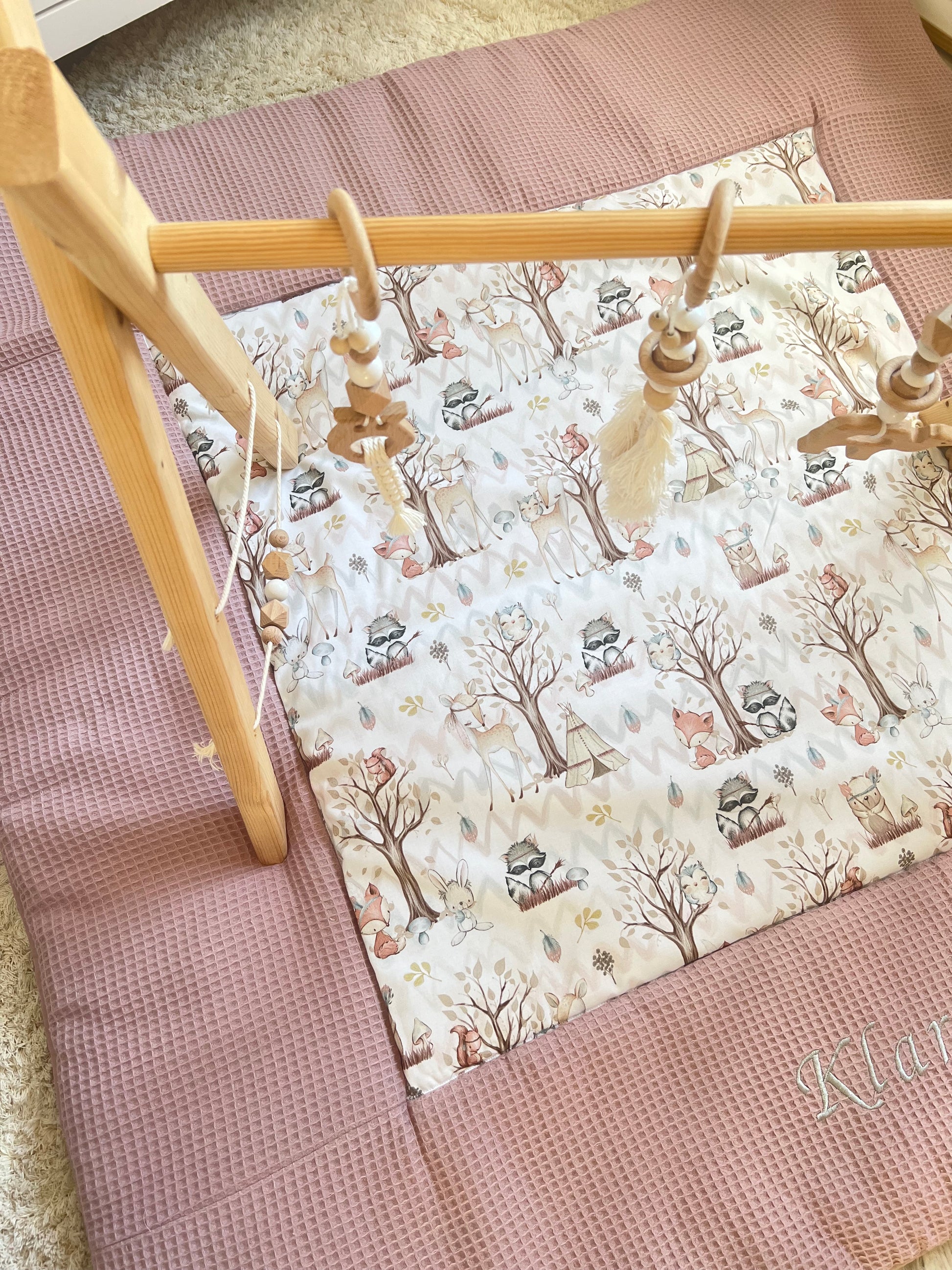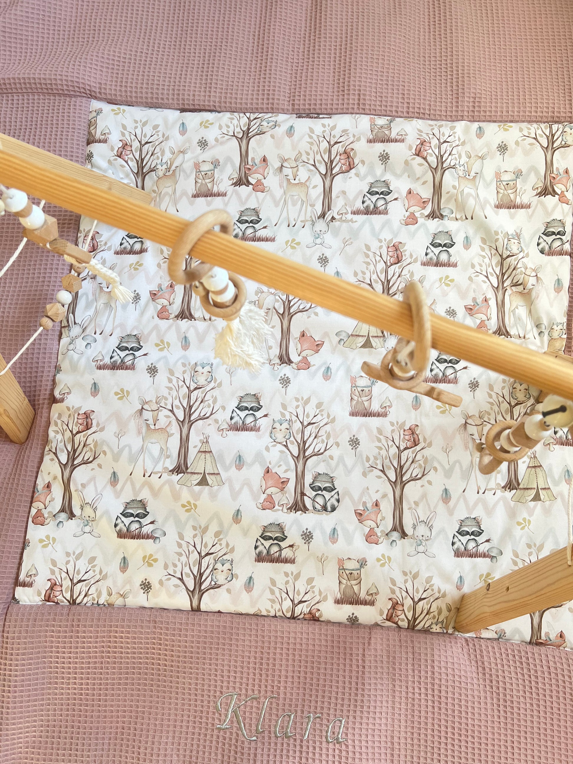 Krabbeldecke „Waldtiere+Waffelpique altrosa"