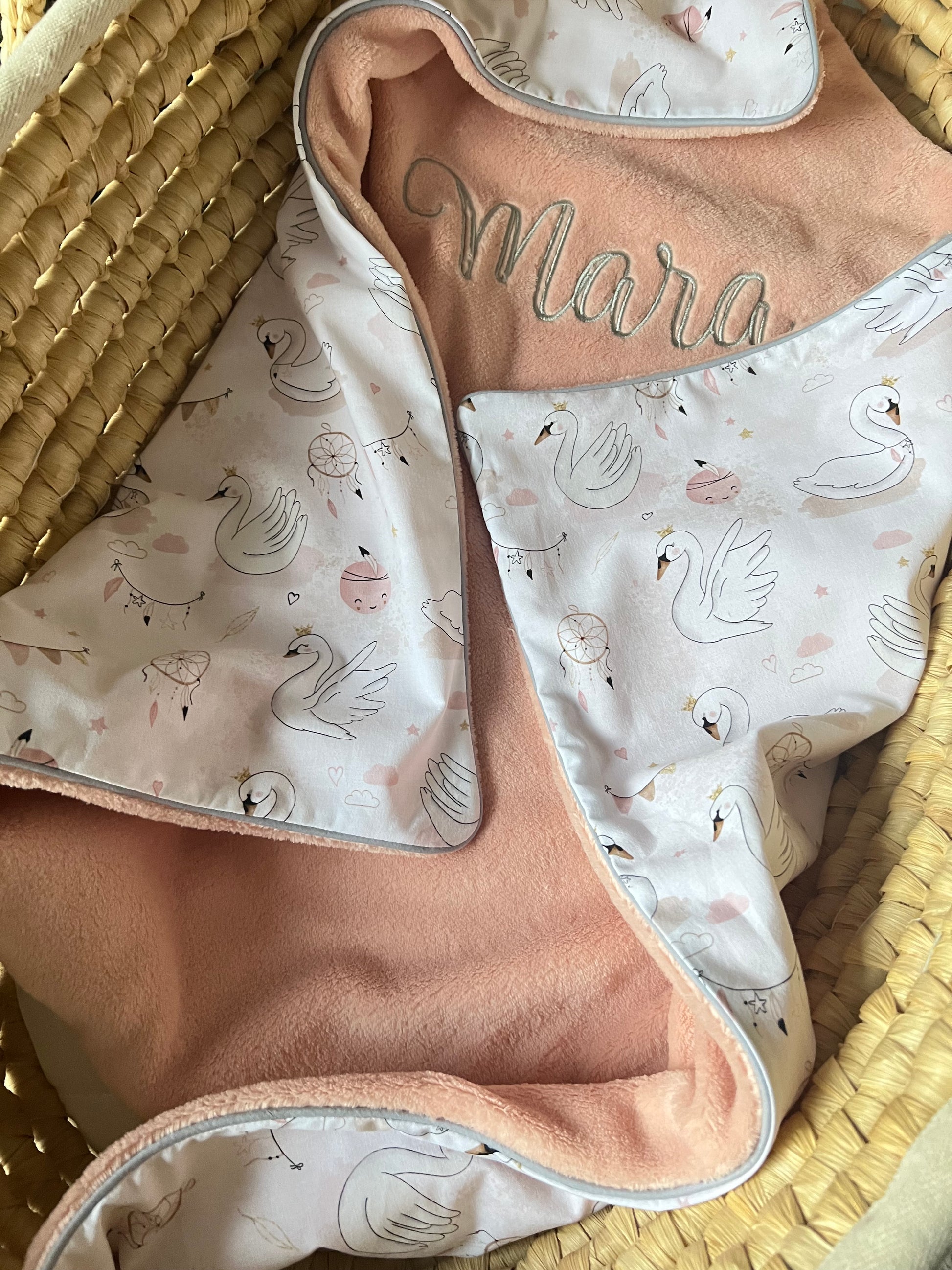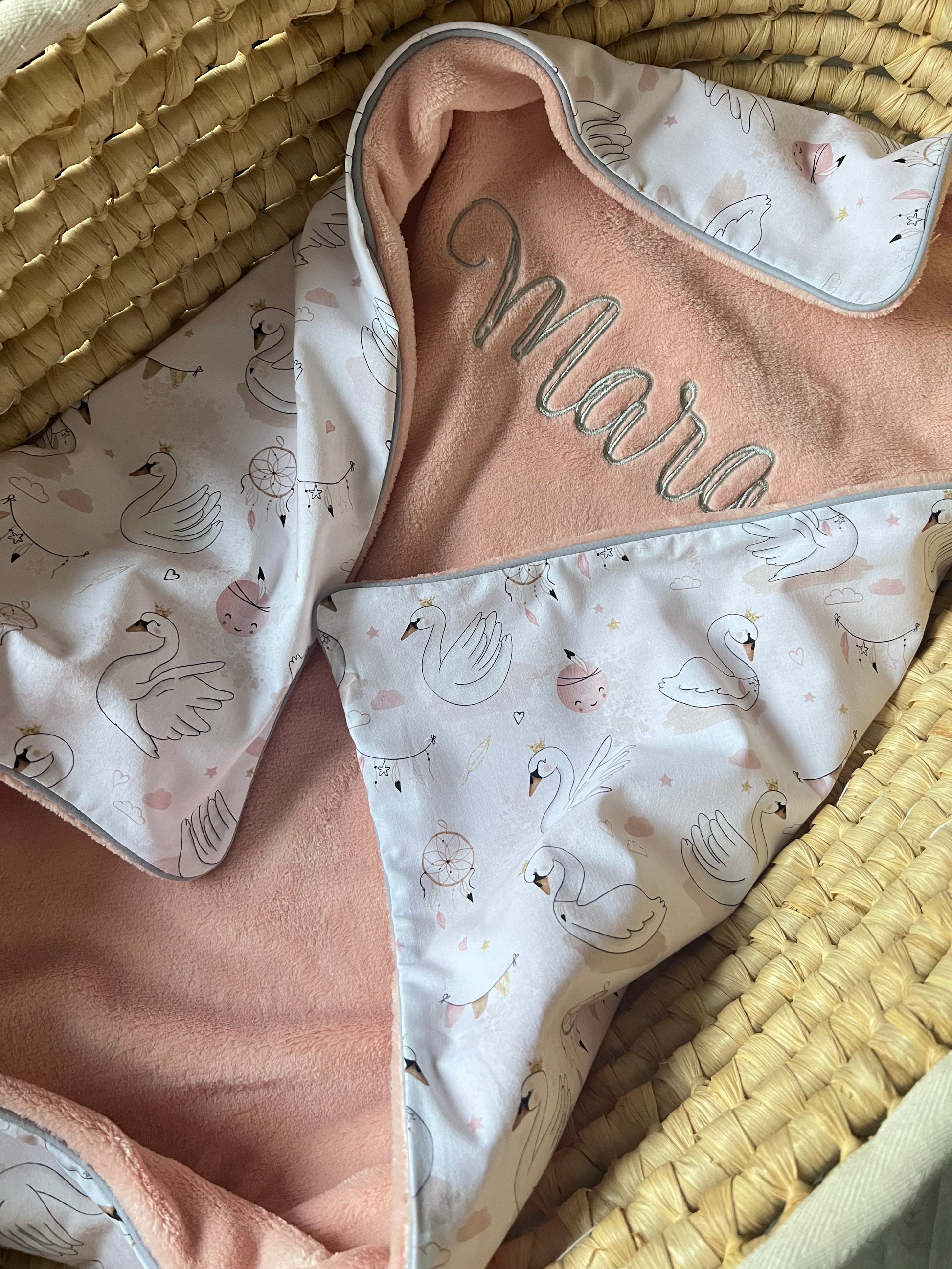 Kuscheldecke altrosa „Schwan“ (einen Namen sticken ist gratis!)
