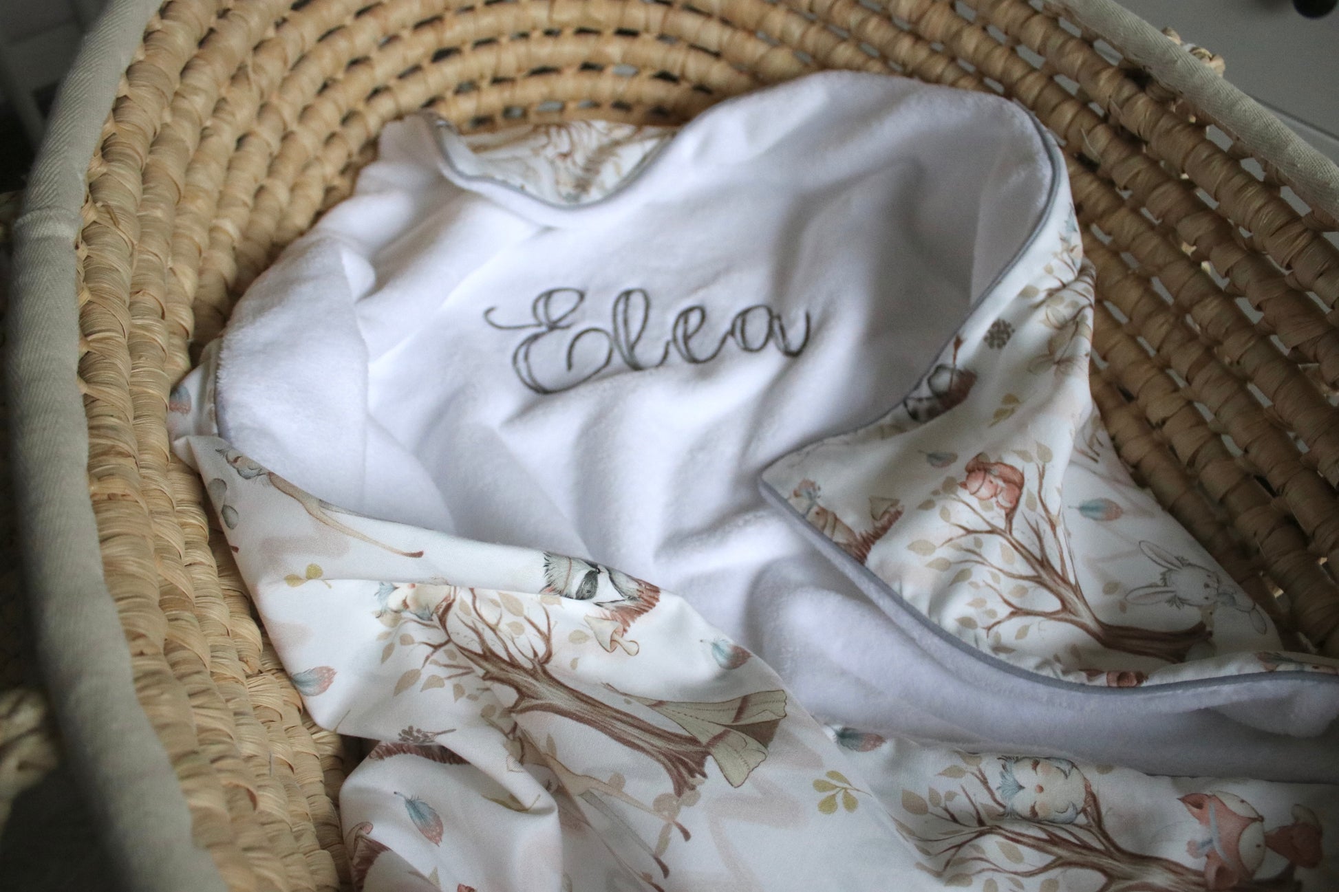 Kuscheldecke weiß „Waldtiere“ (einen Namen sticken ist gratis!)