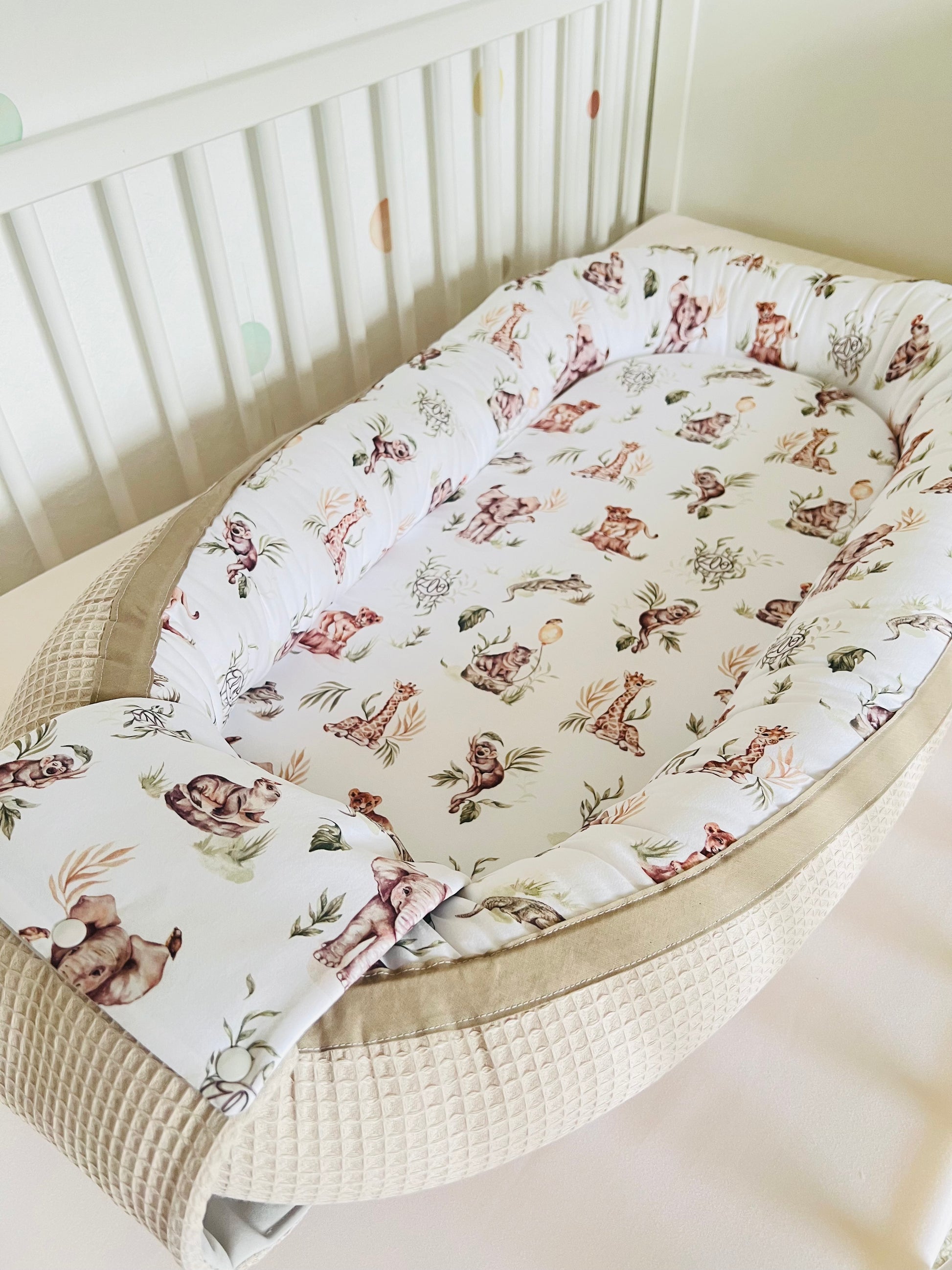 Die Babynestchen geben durch ihre weiche Begrenzung das Gefühl von Schutz und die Sicherheit, welche es aus dem Mutterleib kennt. Somit sind sie der idealer Begleiter für die ersten Monate deines Babys. Nur unter Aufsicht eines Erwachsenen verwenden!