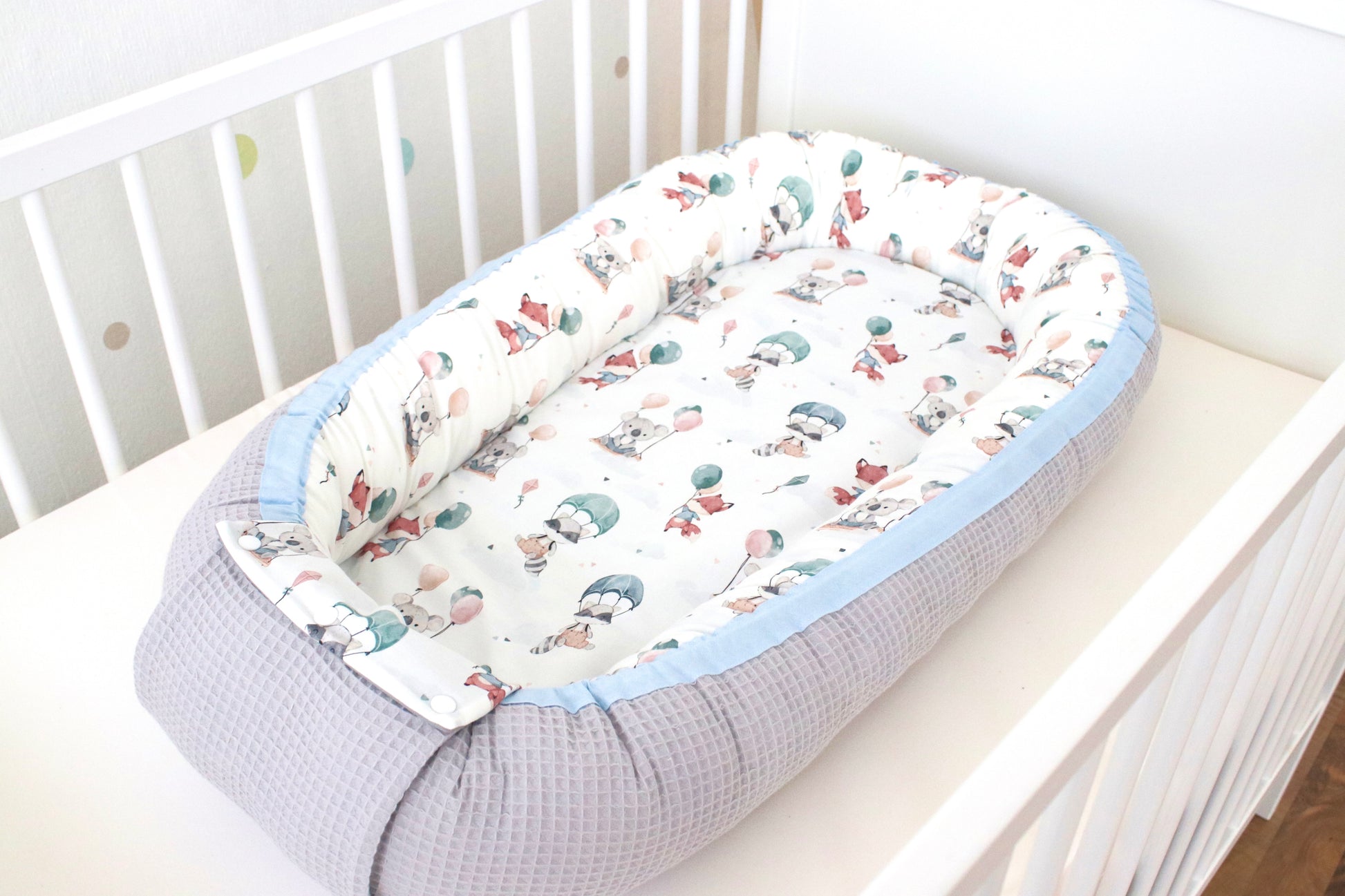 Die Babynestchen geben durch ihre weiche Begrenzung das Gefühl von Schutz und die Sicherheit, welche es aus dem Mutterleib kennt. Somit sind sie der idealer Begleiter für die ersten Monate deines Babys. Nur unter Aufsicht eines Erwachsenen verwenden!