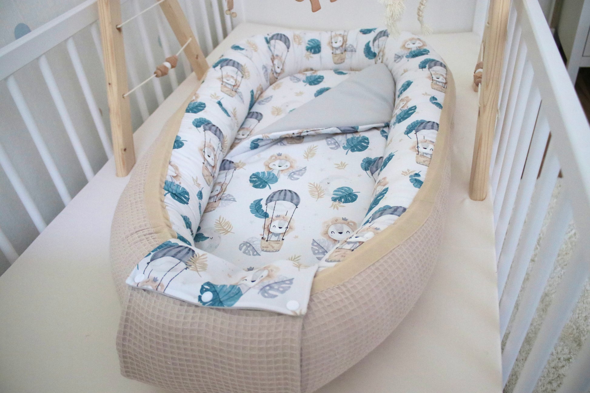 Durch die weich gepolsterte Umrandung fühlt sie das Baby wohl und geborgen, wie in Mama ´s Bauch. Die Babynestchen geben durch ihre weiche Begrenzung das Gefühl von Schutz und die Sicherheit, welche es aus dem Mutterleib kennt. Somit sind sie der idealer Begleiter für die ersten Monate deines Babys. Nur unter Aufsicht eines Erwachsenen verwenden!
