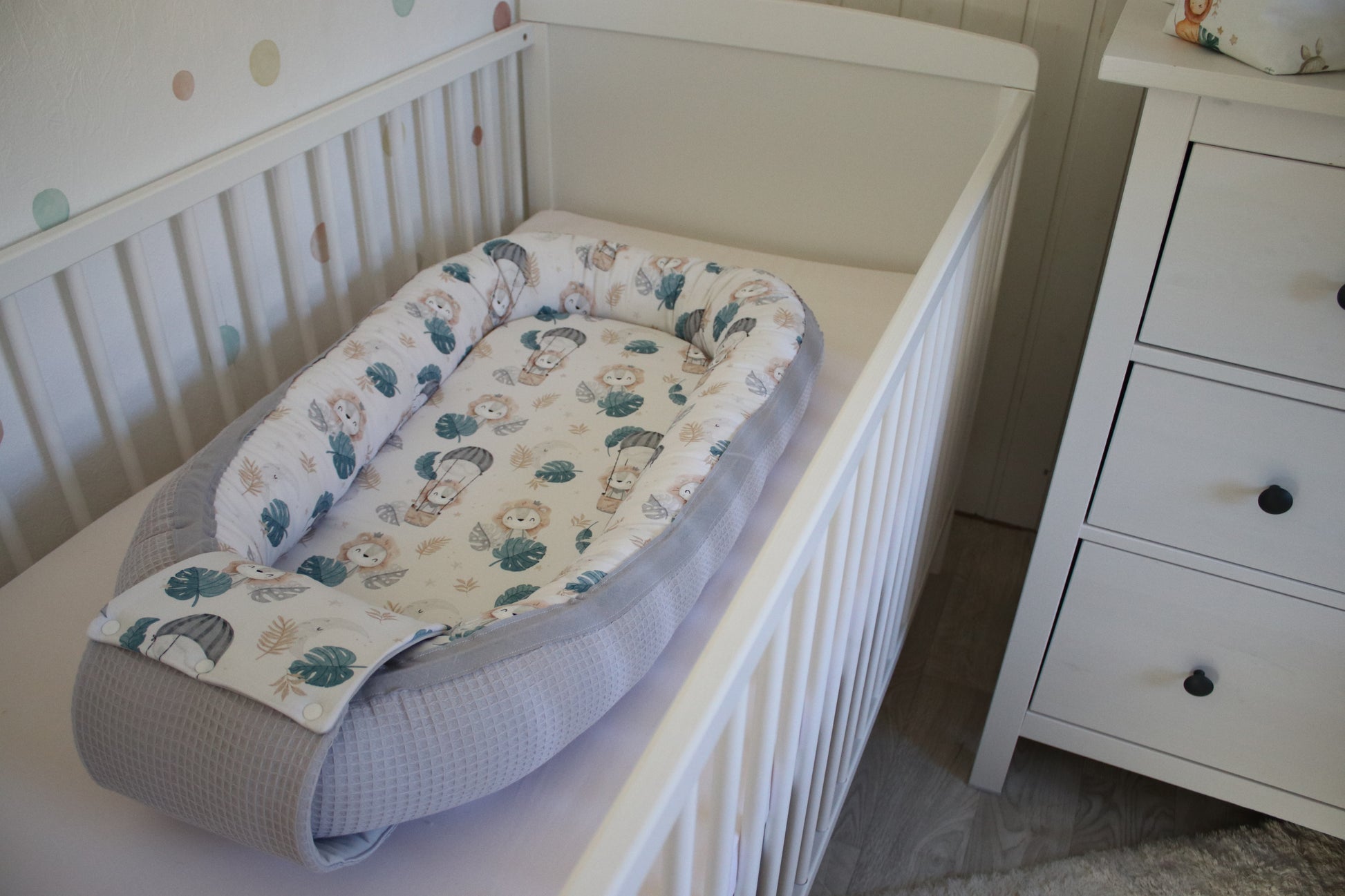 Die Babynestchen geben durch ihre weiche Begrenzung das Gefühl von Schutz und die Sicherheit, welche es aus dem Mutterleib kennt. Somit sind sie der idealer Begleiter für die ersten Monate deines Babys. Nur unter Aufsicht eines Erwachsenen verwenden!