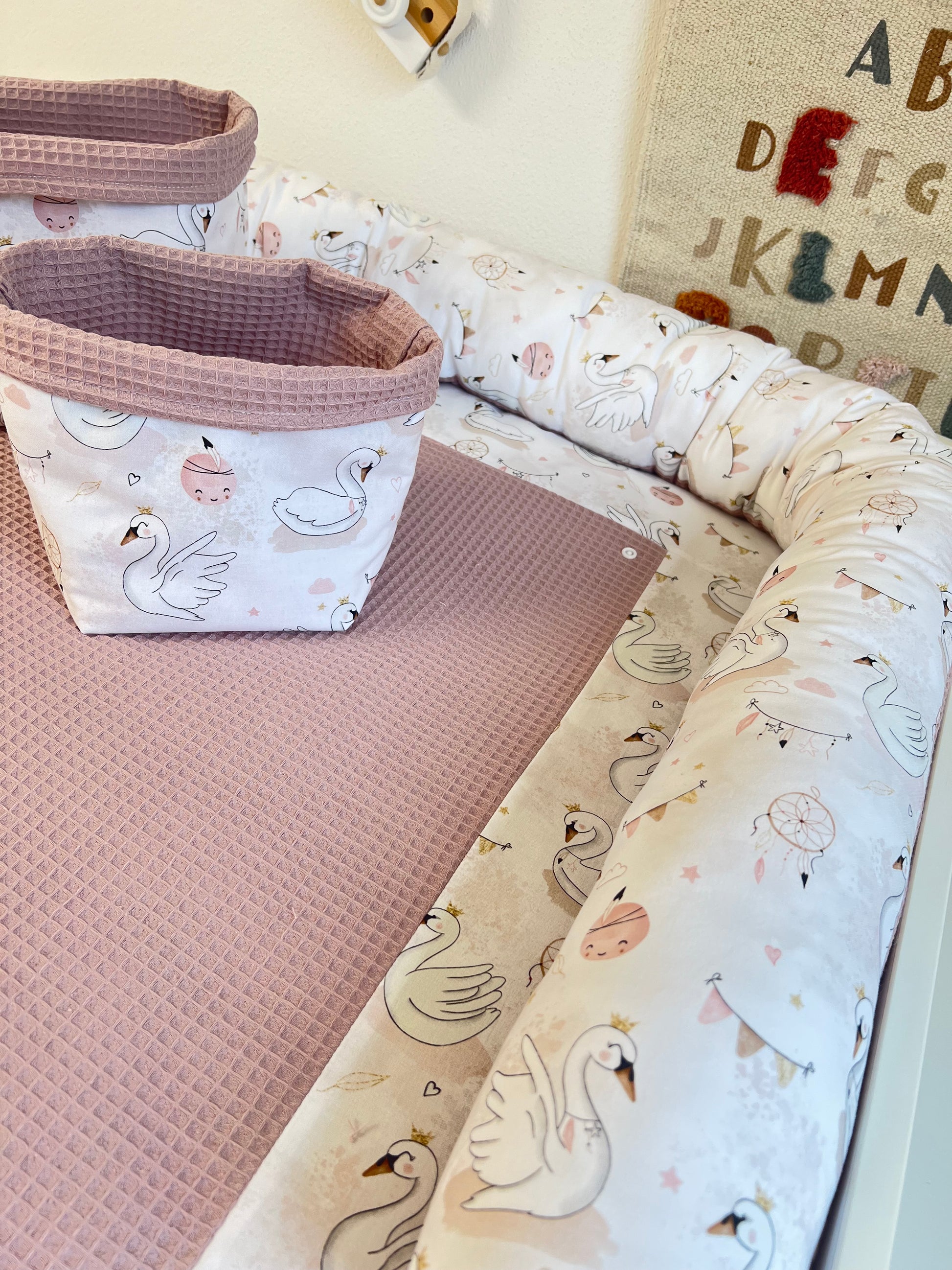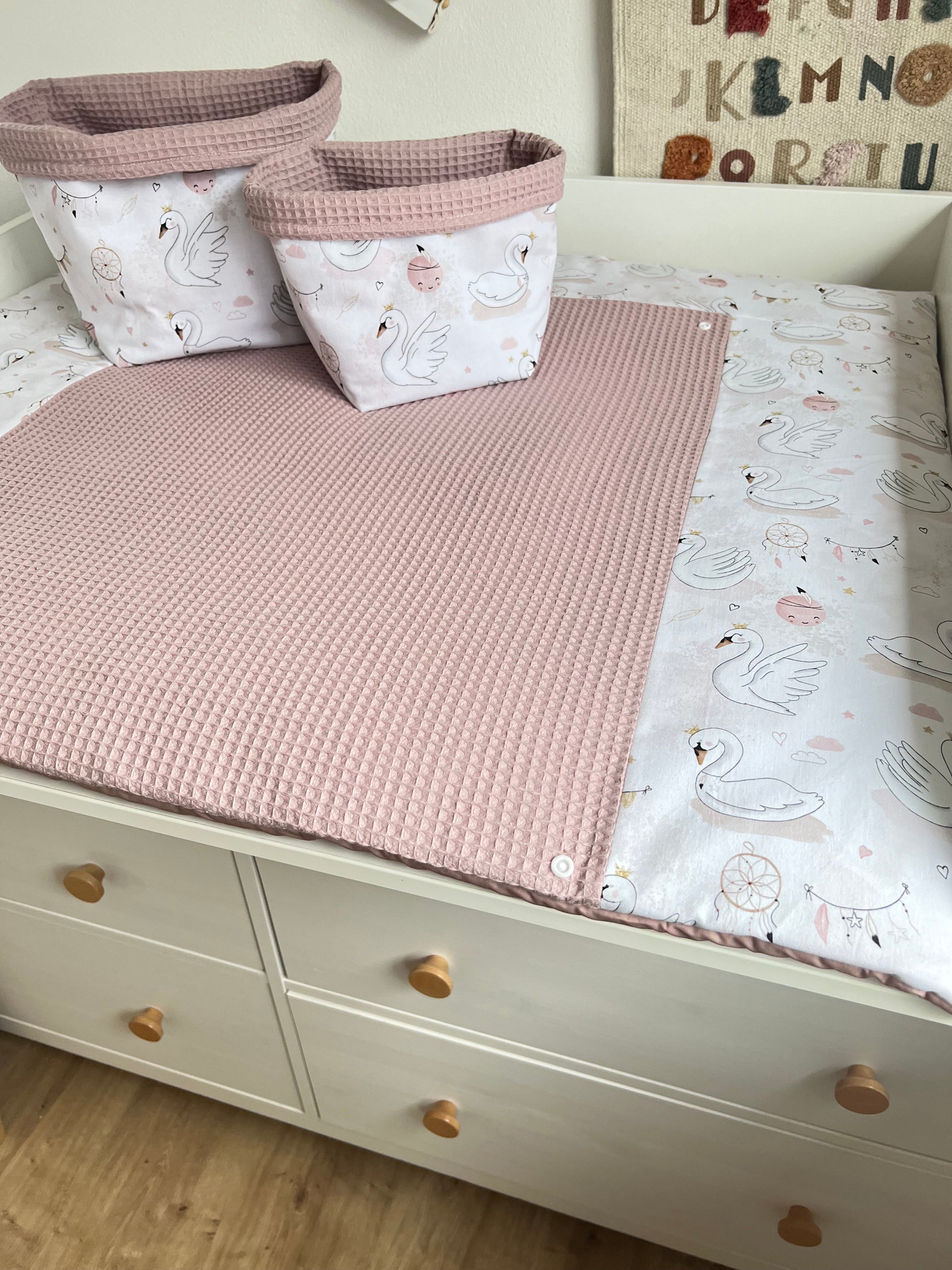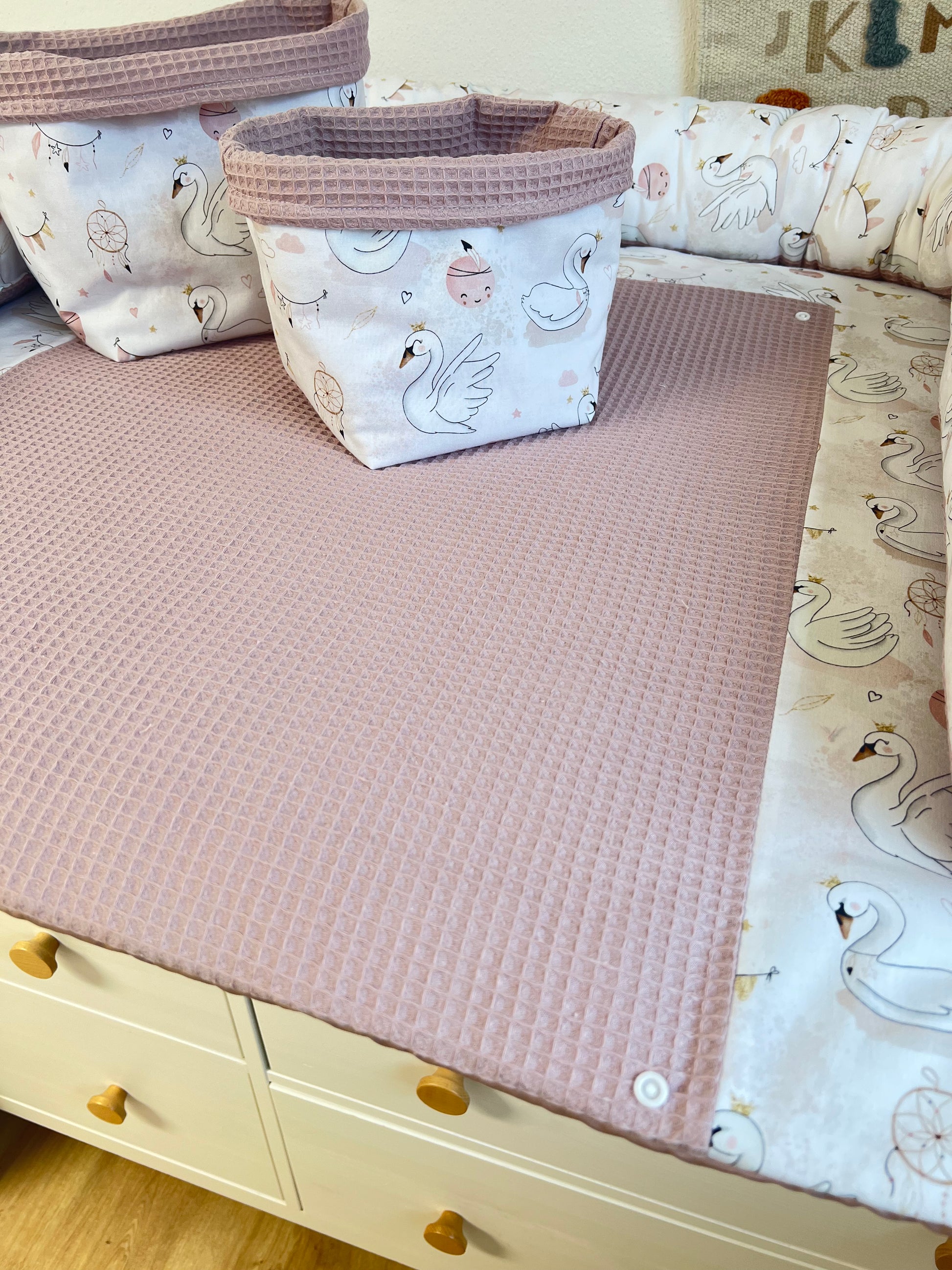 Wickelauflage Set „Schwan+Waffelpique altrosa“
