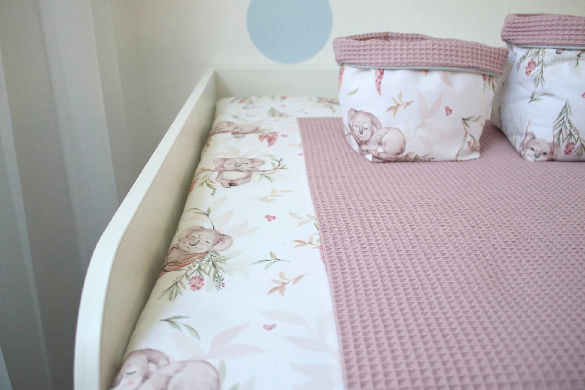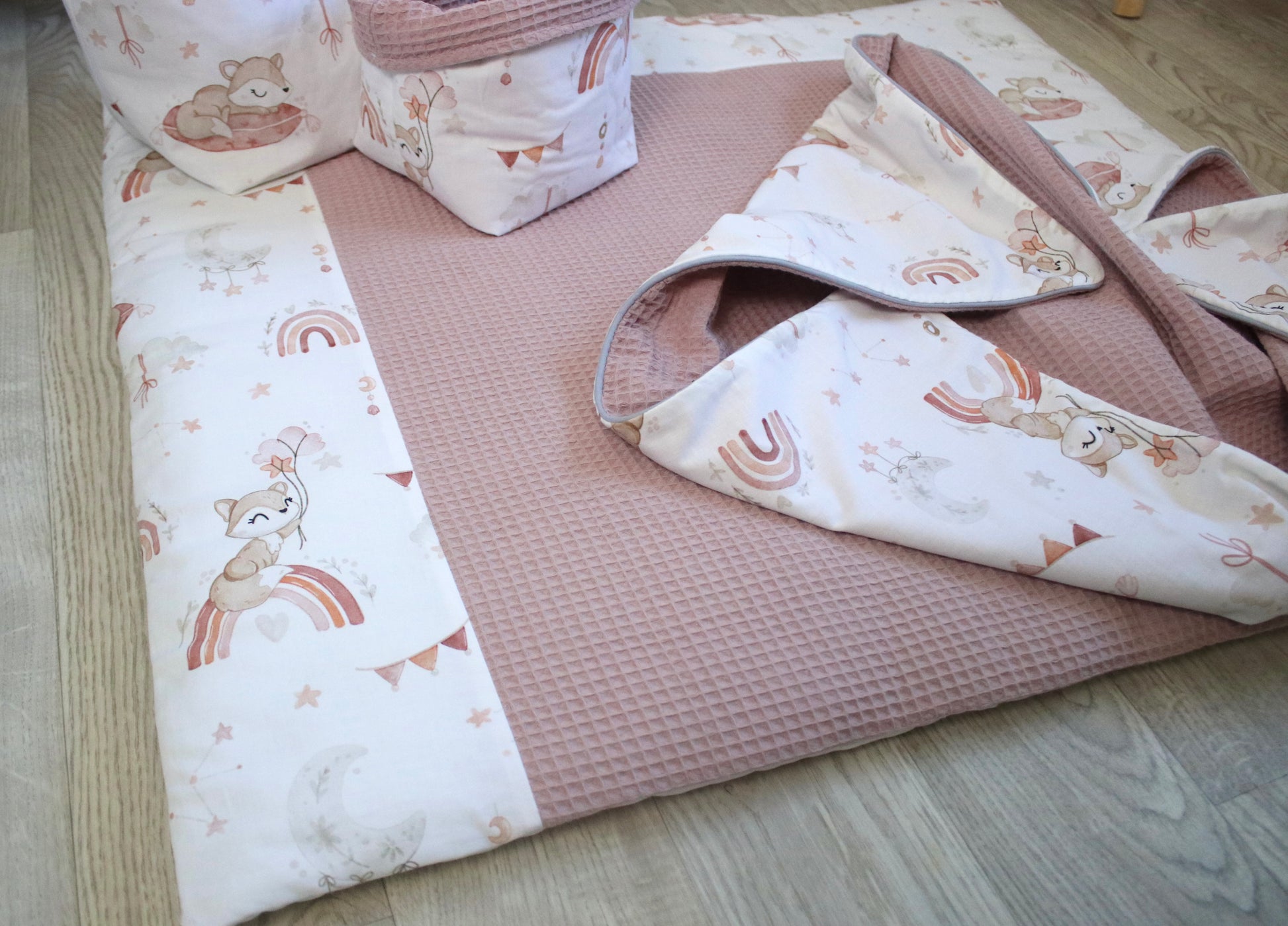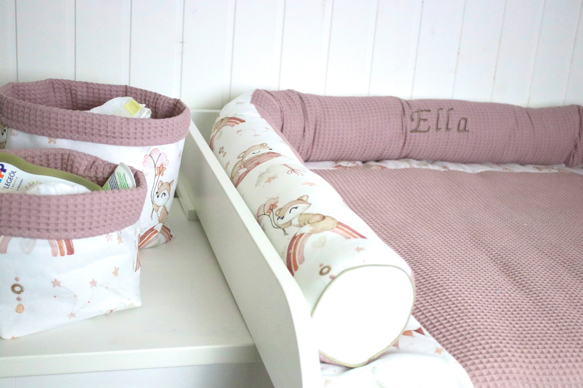 Wickelauflage Set „Füchse auf Regenbogen+Waffelpique altrosa“