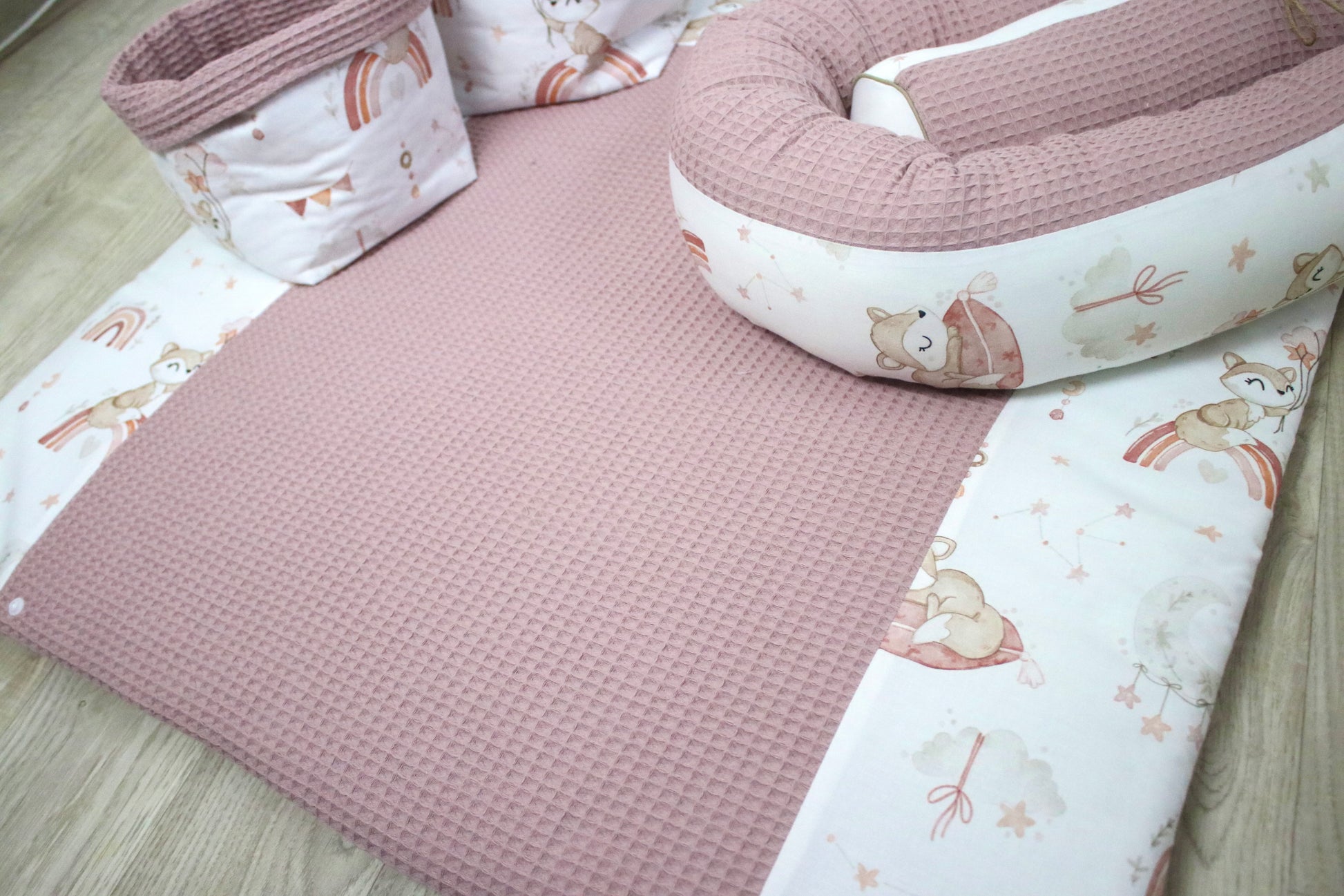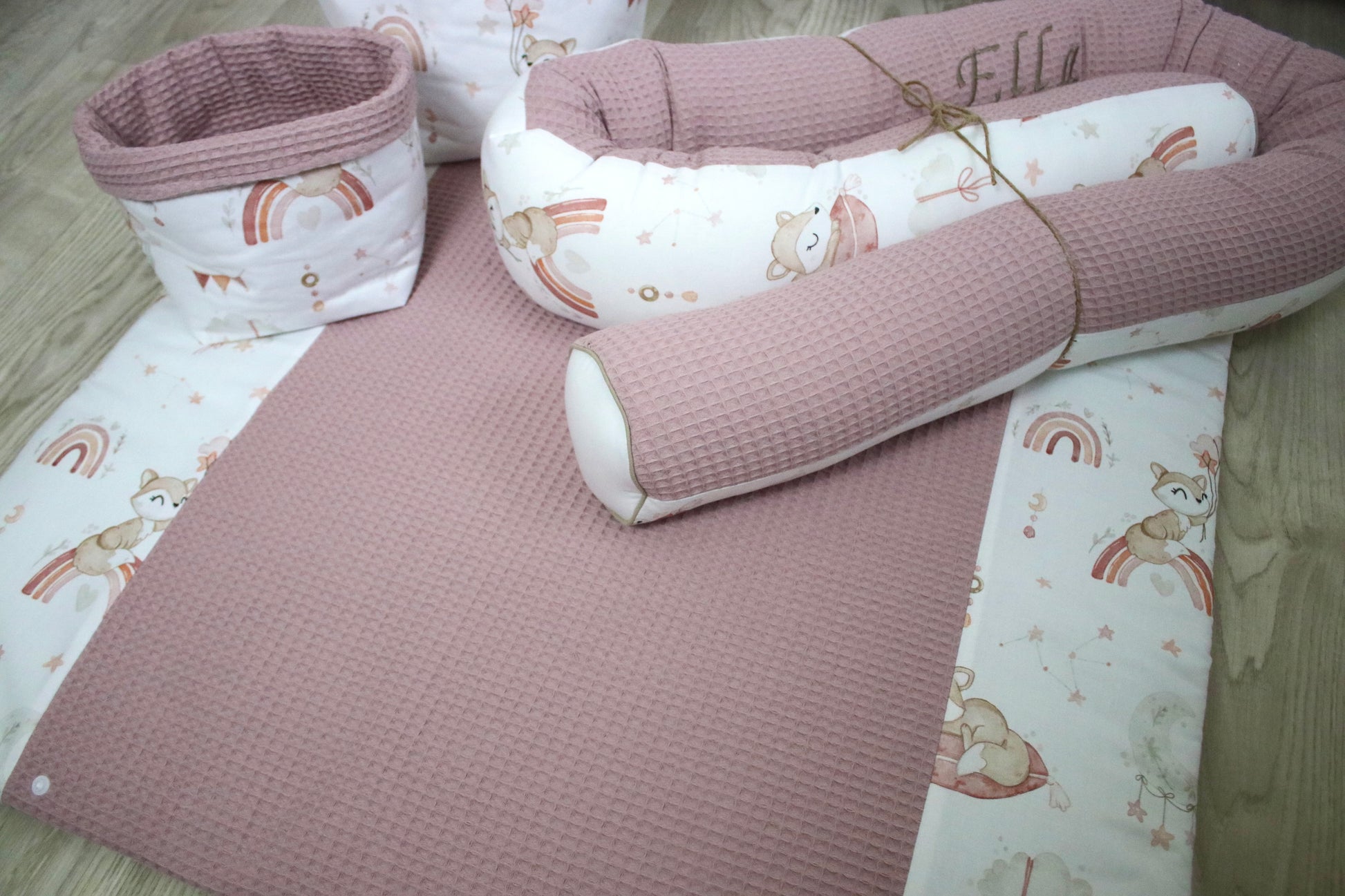 - die separate Auflagen, Bettschlange, Babydecke, Krabbeldecke sind waschbar bei 30°C ohne Weichspüler