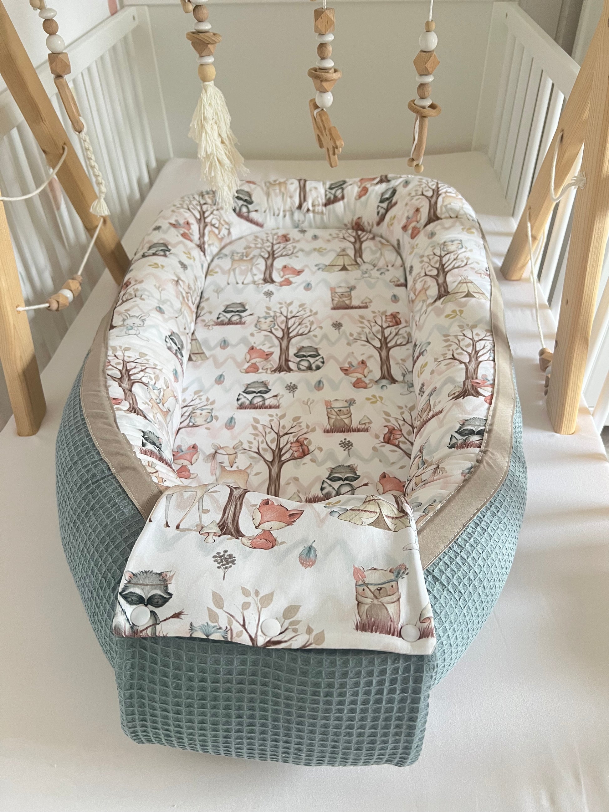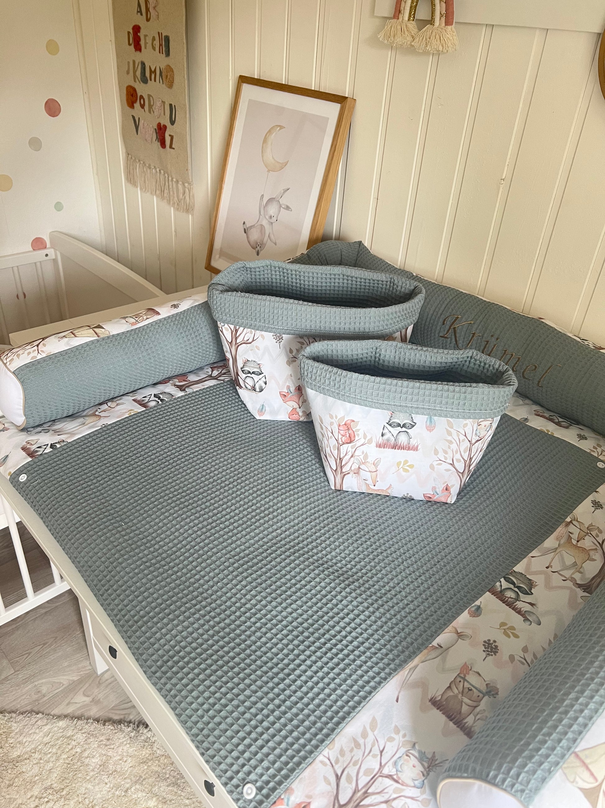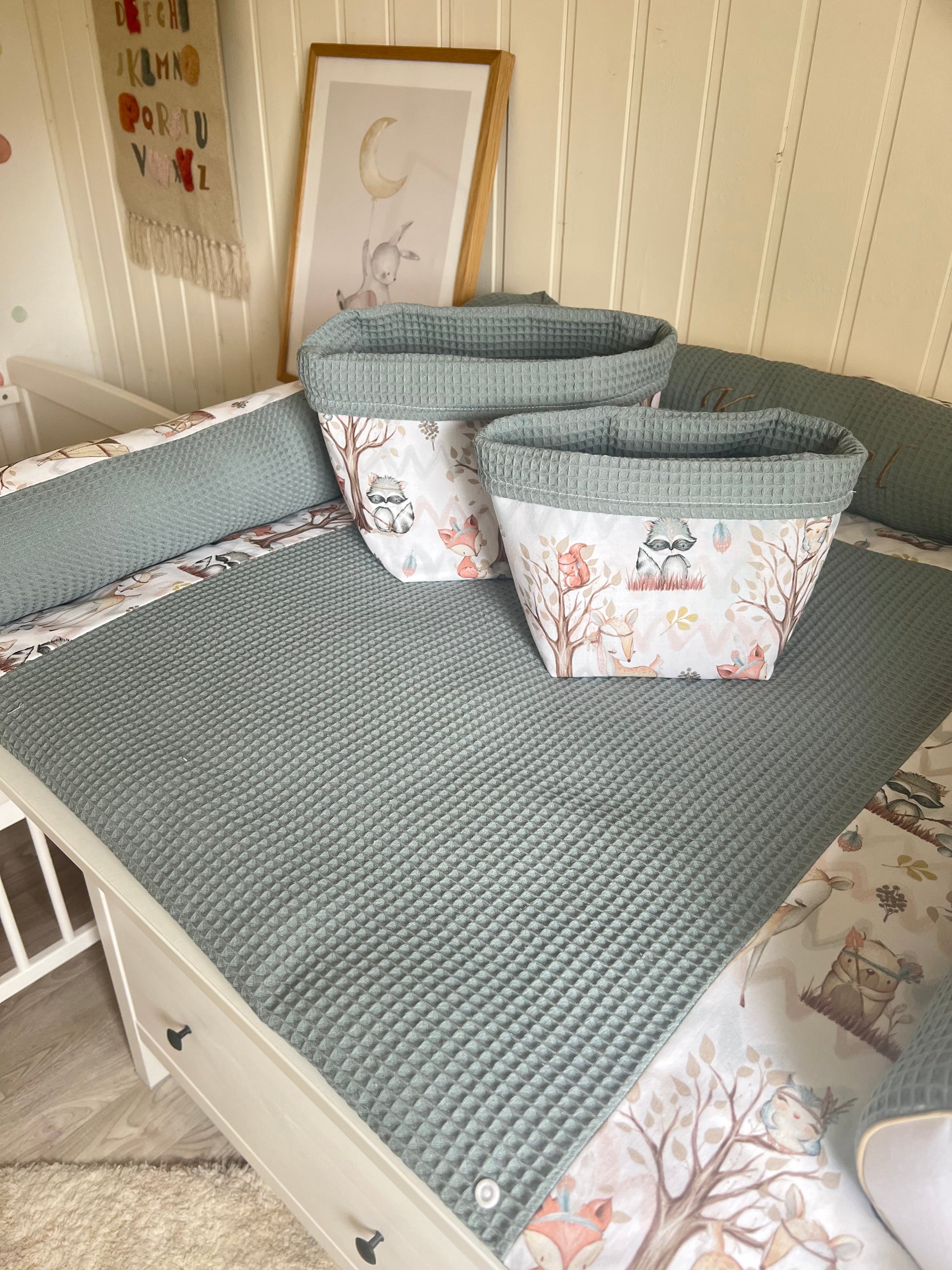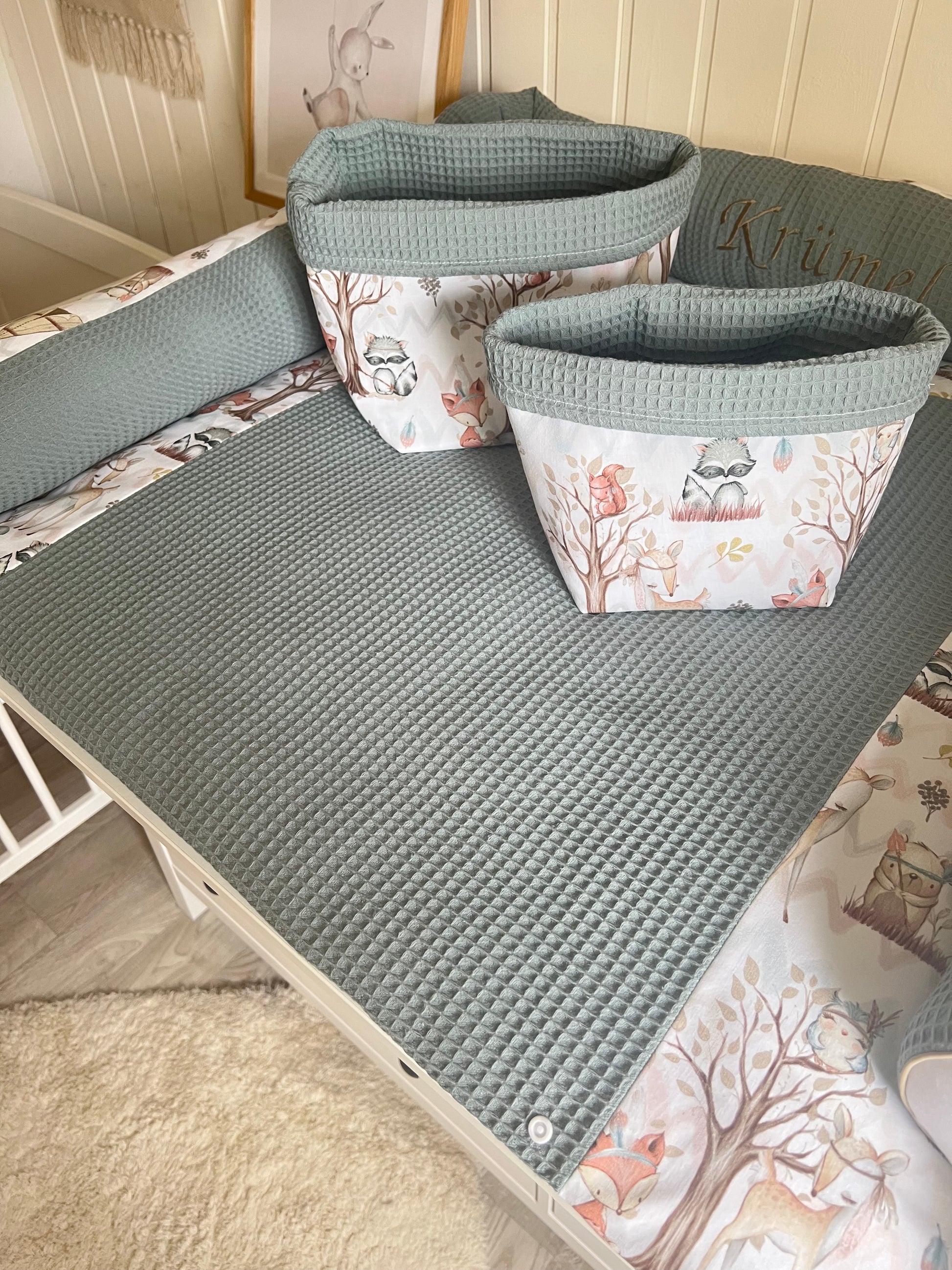 Wickelauflage Set "Waldtiere+Waffelpique altgrün“