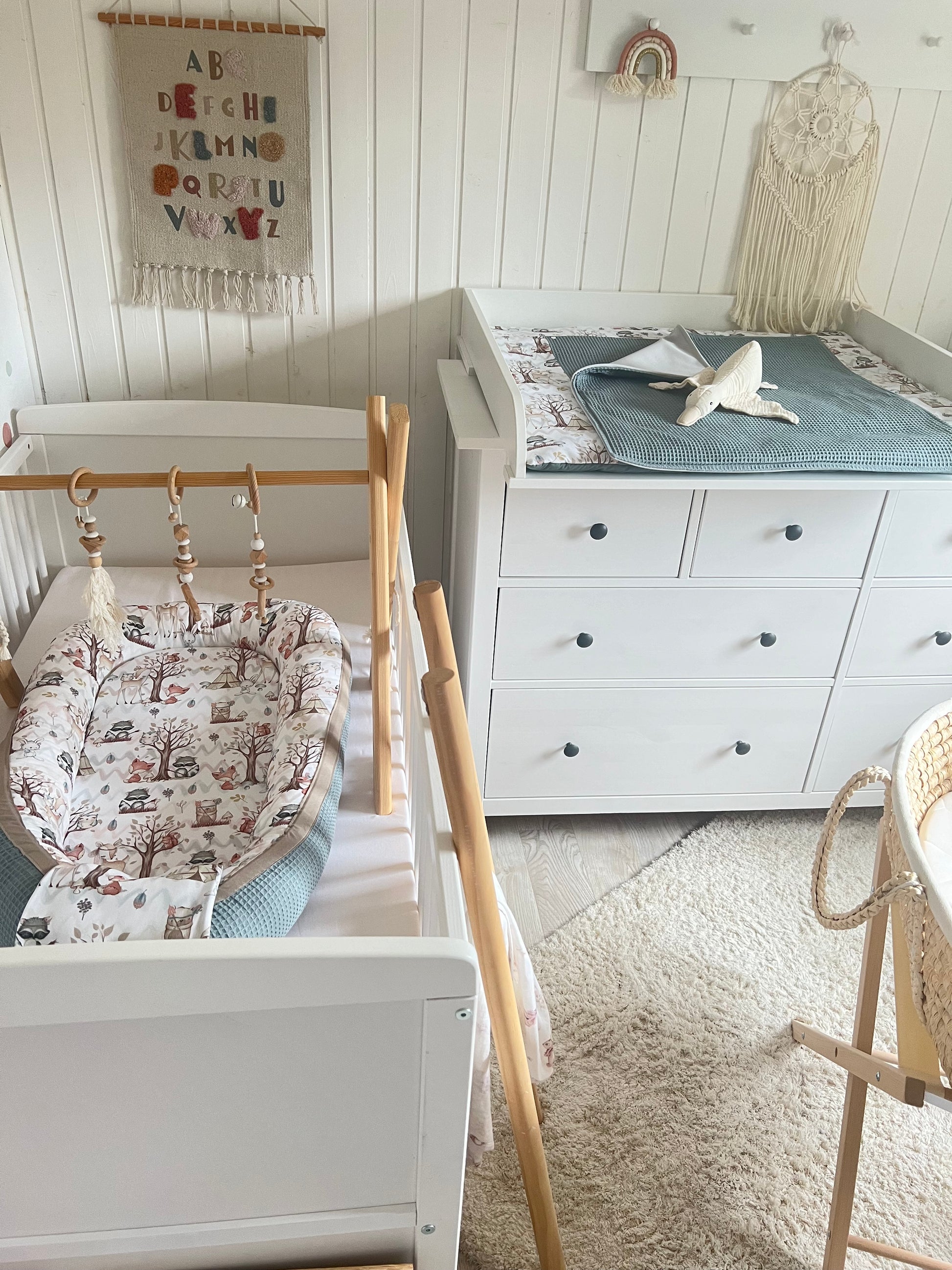 - die separate Auflagen, Bettschlange, Babydecke, Krabbeldecke sind waschbar bei 30°C ohne Weichspüler