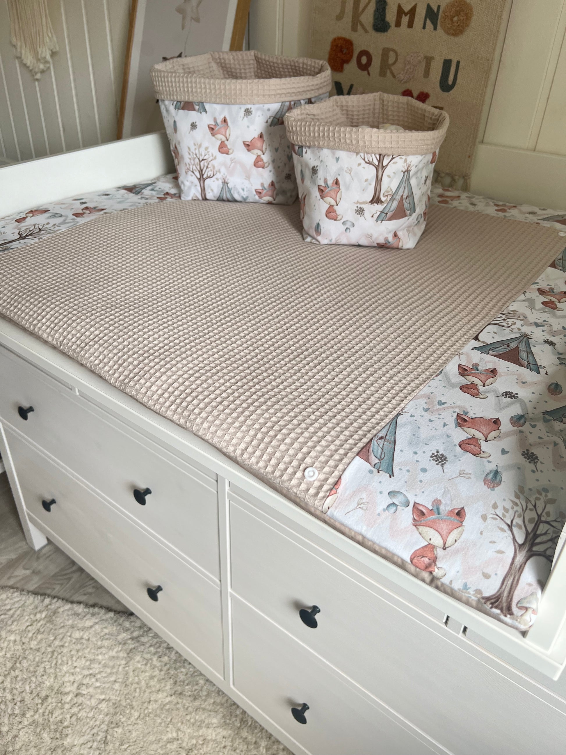 Wickelauflage Set „Füchse+Waffelpique hellbeige“