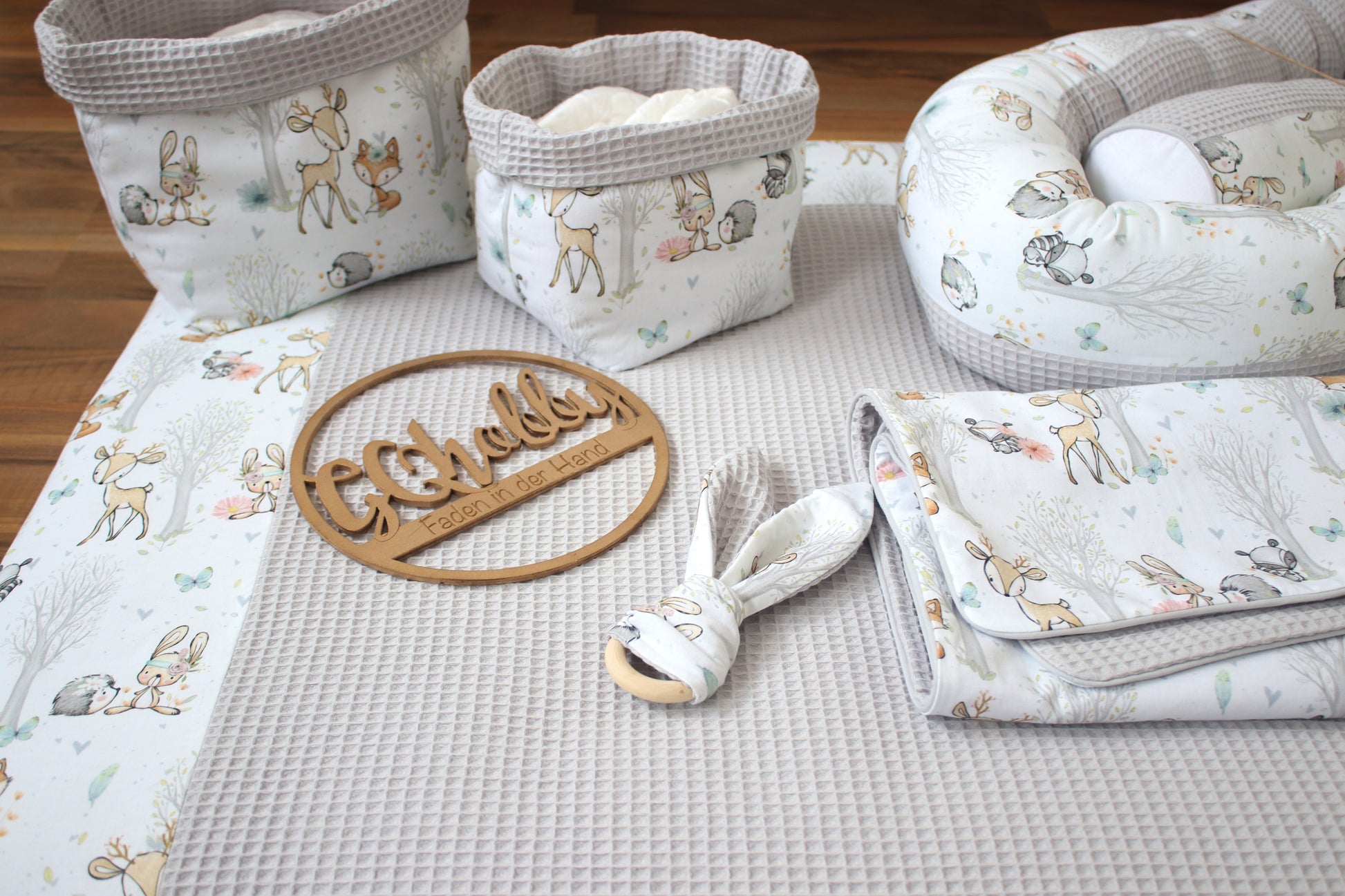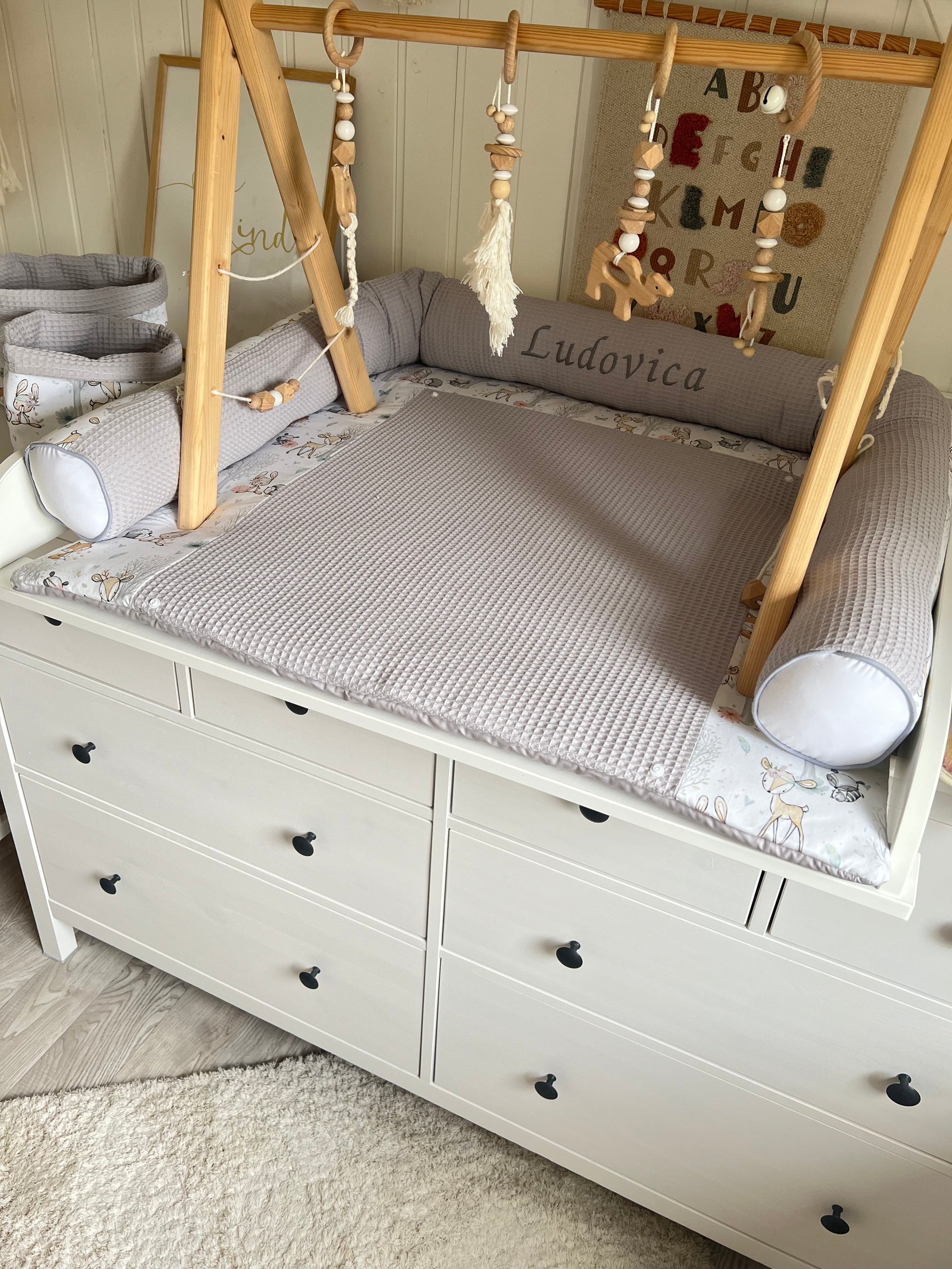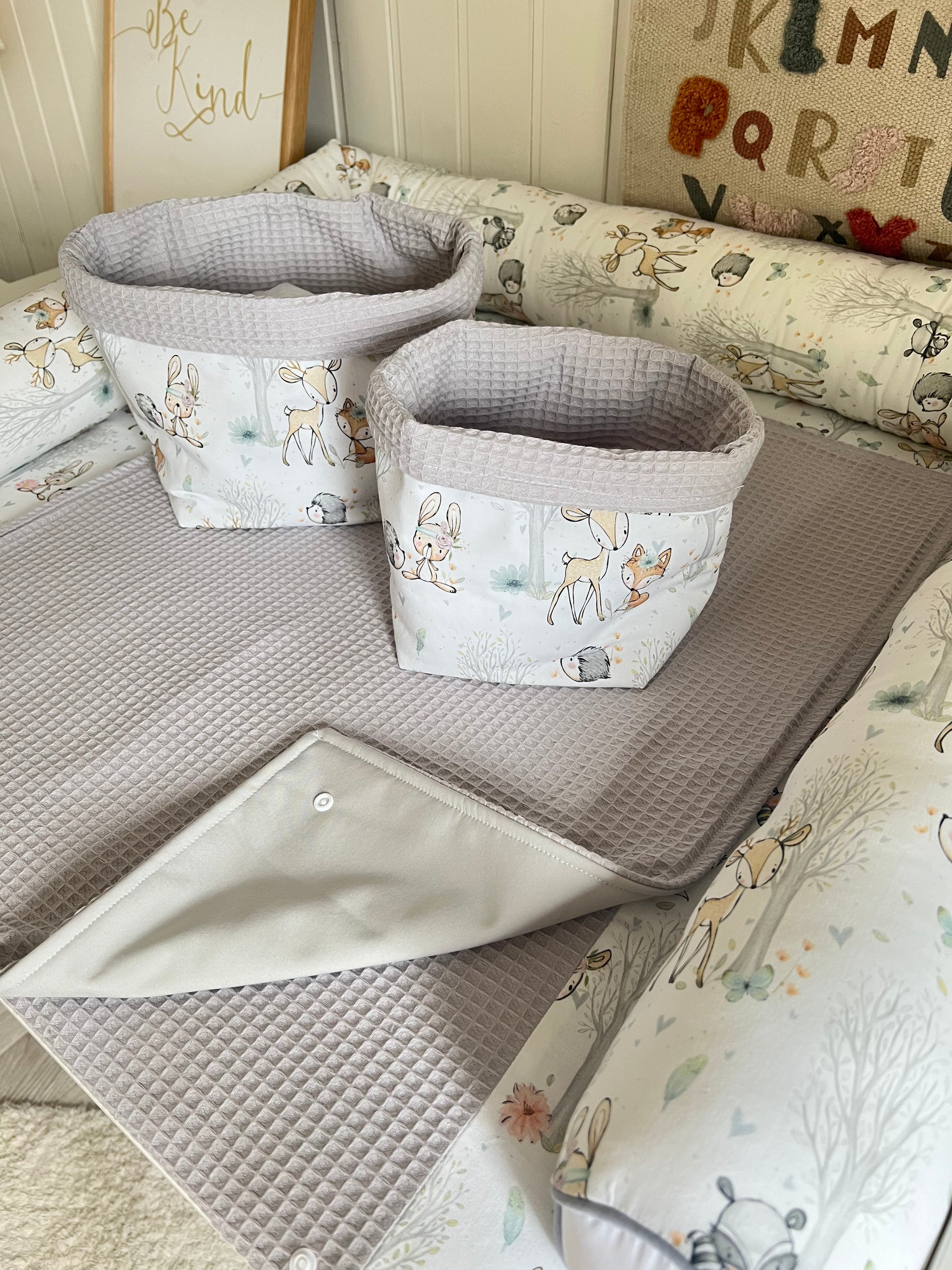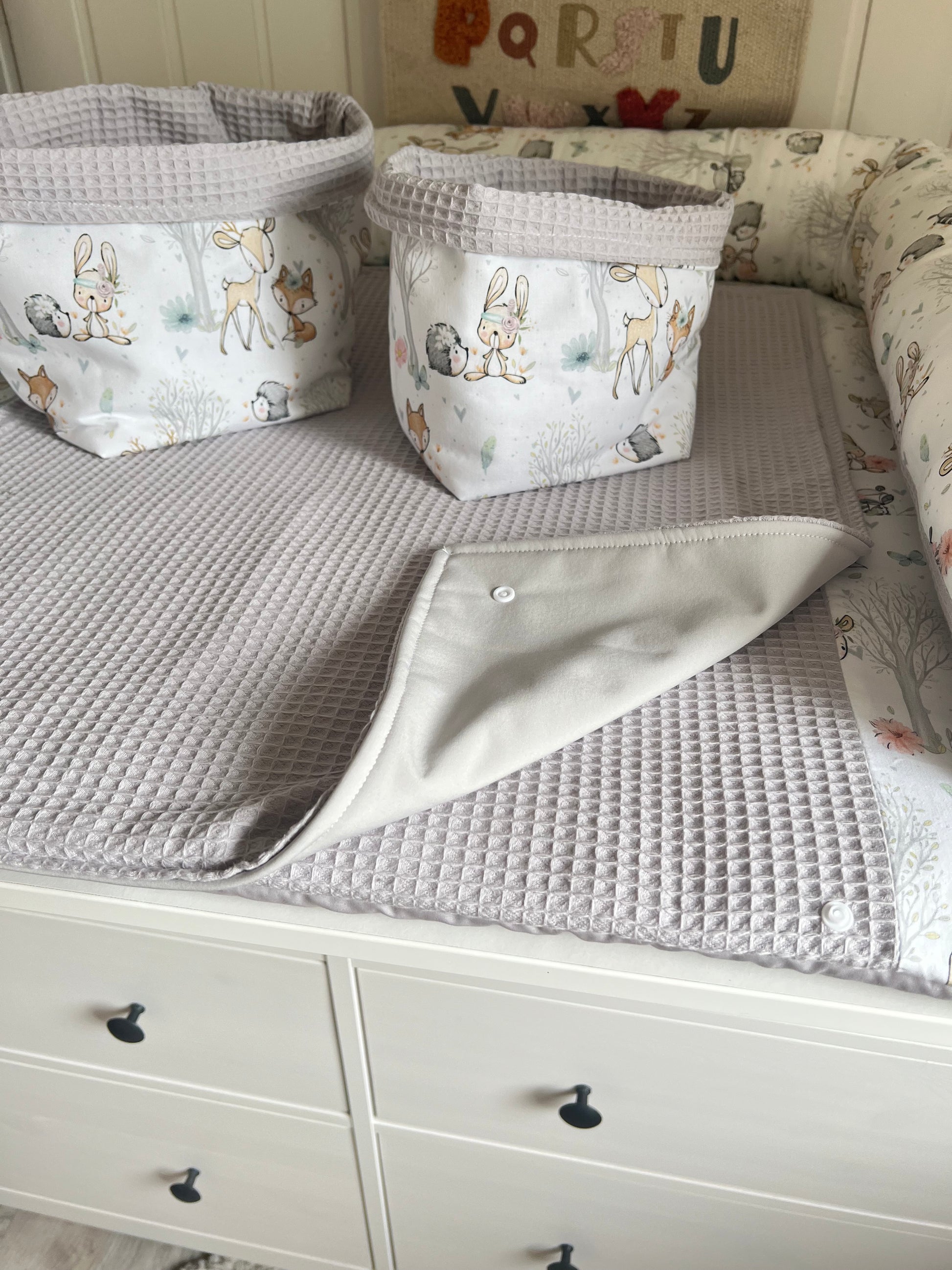 Wickelauflage Set "Baby Waldtiere+Waffelpique hellgrau“