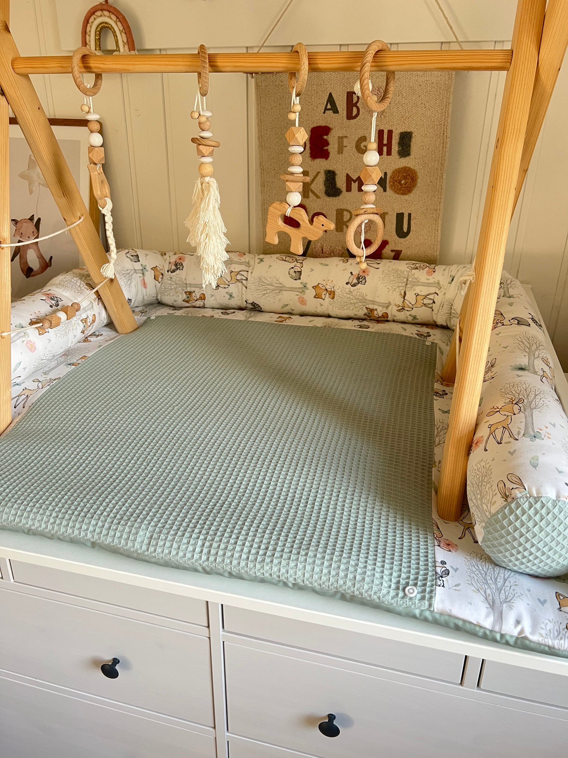 Wickelauflage Set "Baby Waldtiere+Waffelpique hellgrün/mint“