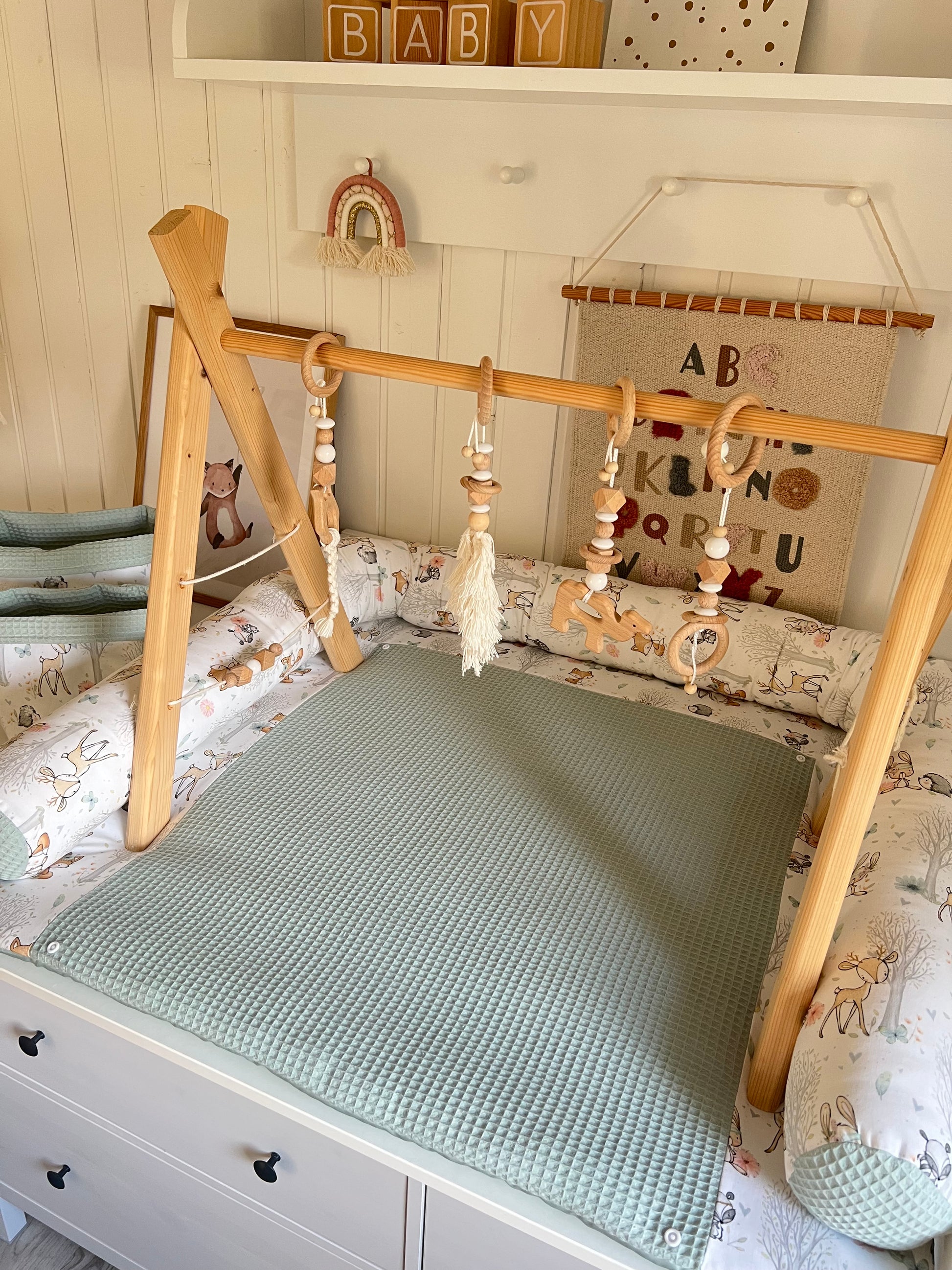 - die separate Auflagen, Bettschlange, Babydecke, Krabbeldecke sind waschbar bei 30°C ohne Weichspüler