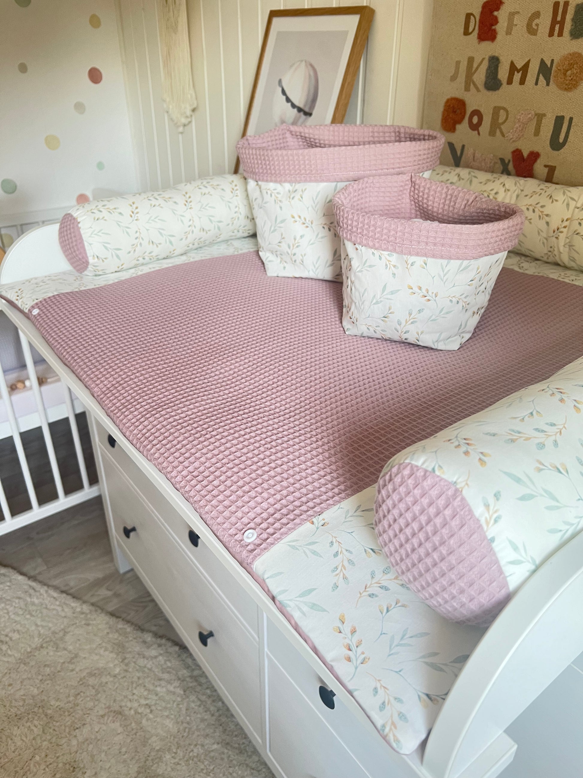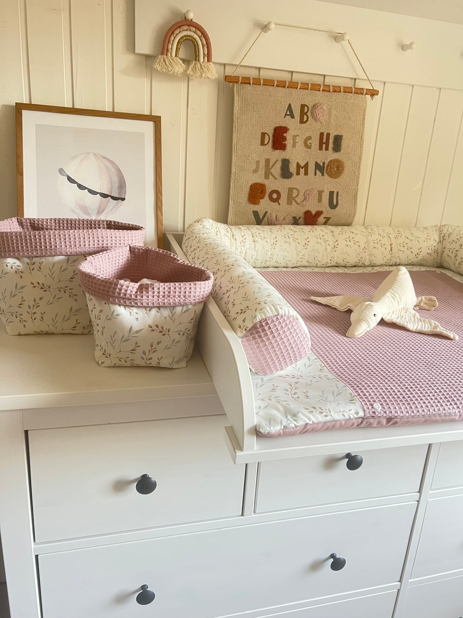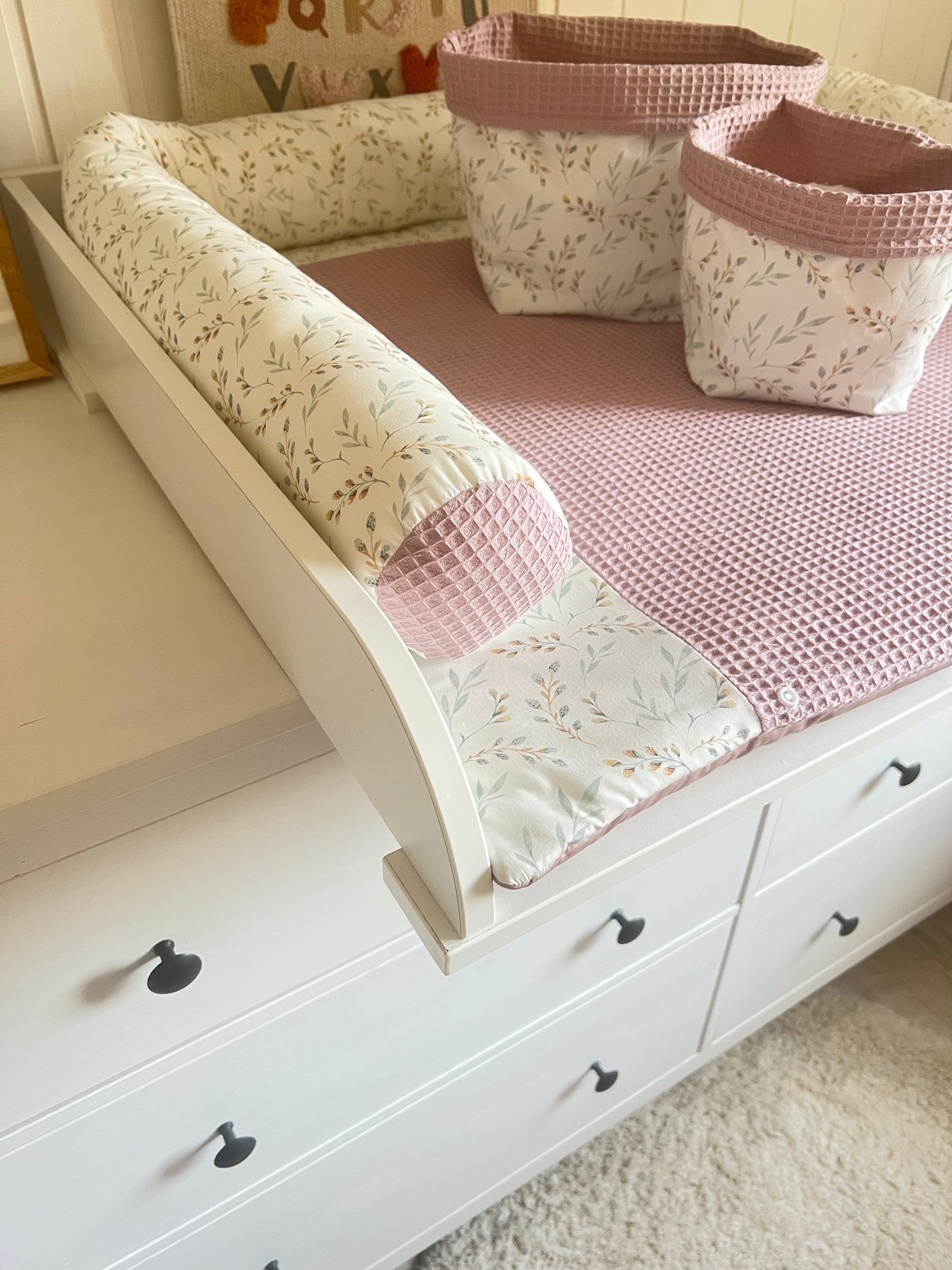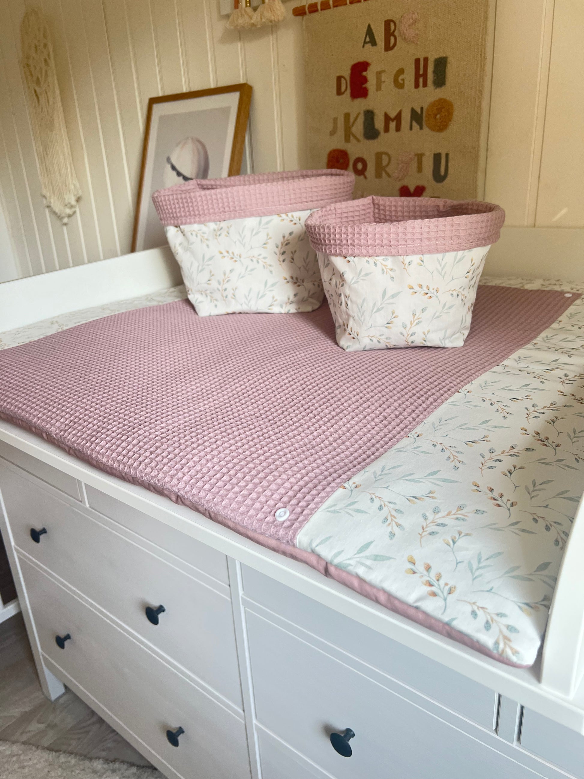 Wickelauflage Set "Pflanzen, Weidenkätzchen+Waffelpique altrosa“