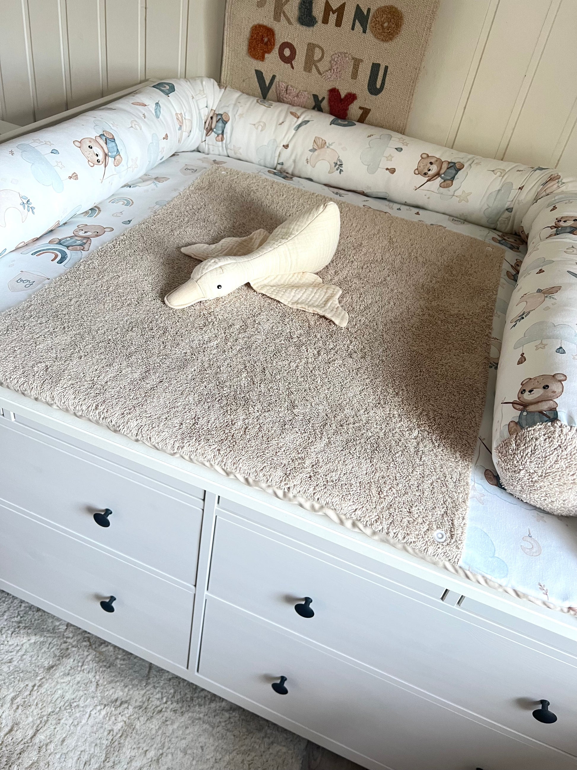 Eine wunderschöne und kuschelige Wickelauflage ist ca.5 cm dick.