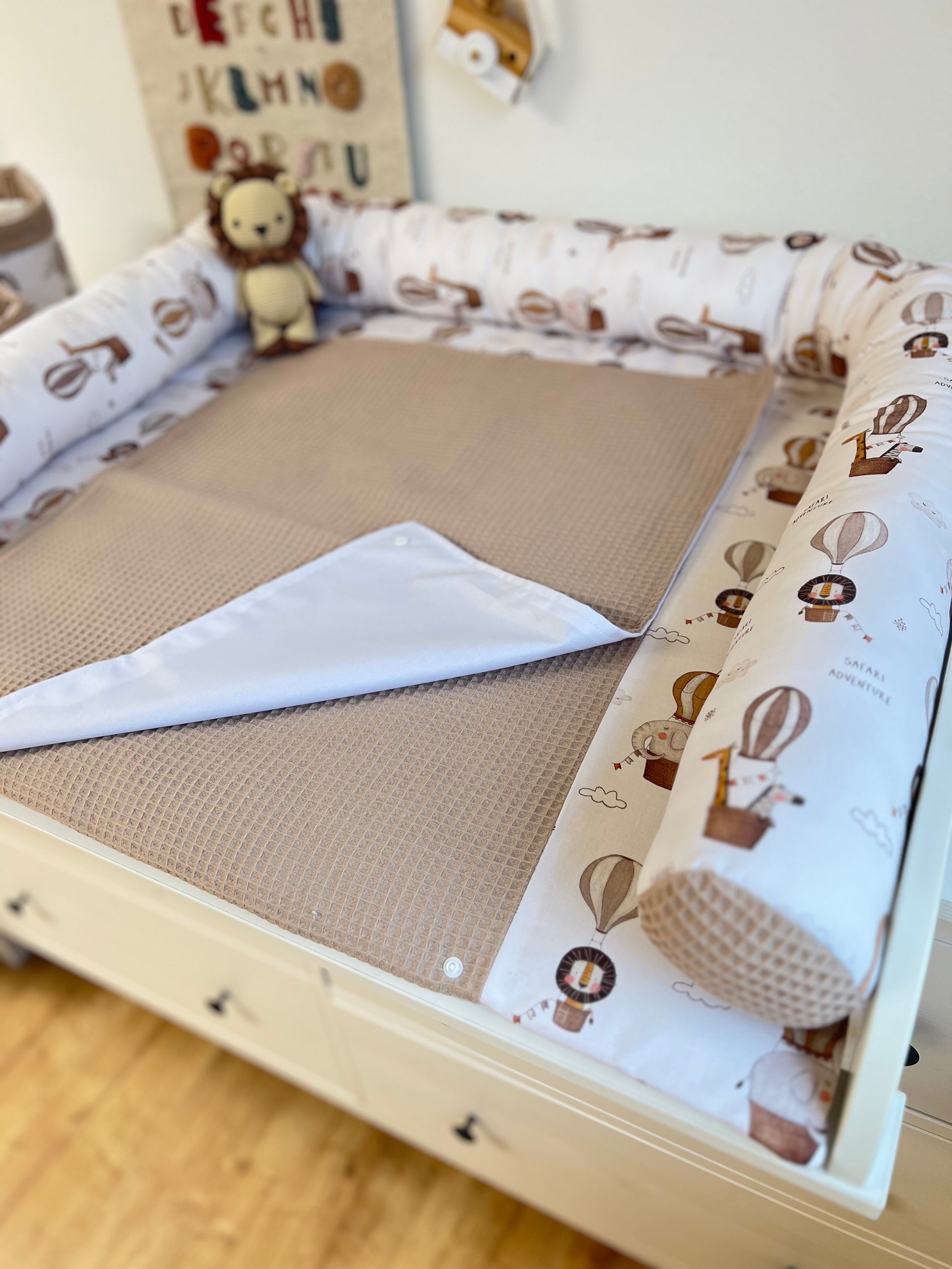 Wickelauflage Set „Adventure+Waffelpique hellbraun“