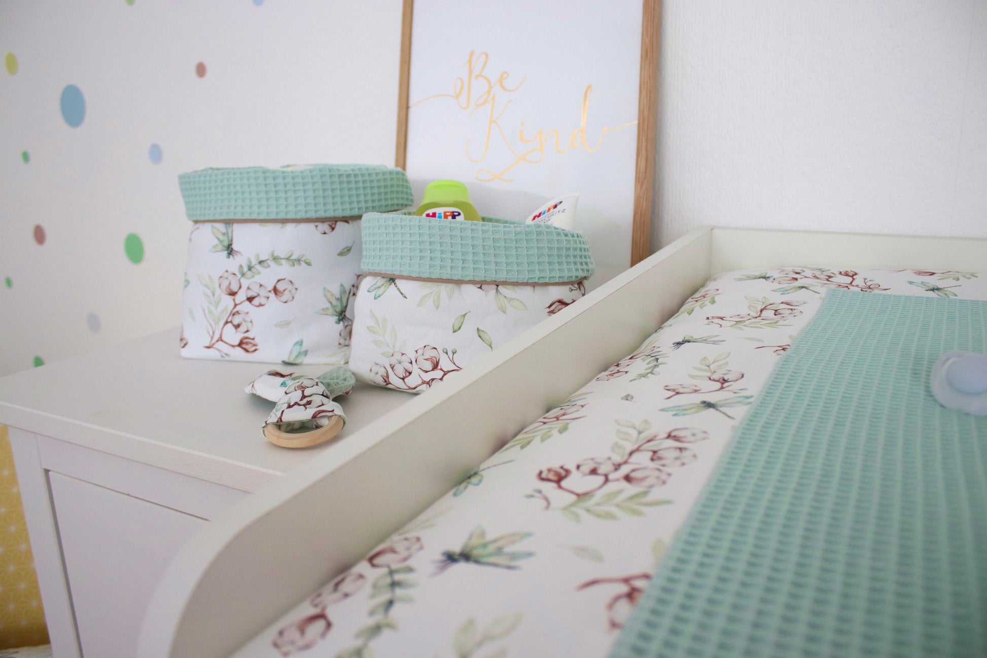 Wickelauflage Set „Libellen+Waffelpique hellgrün/mint“